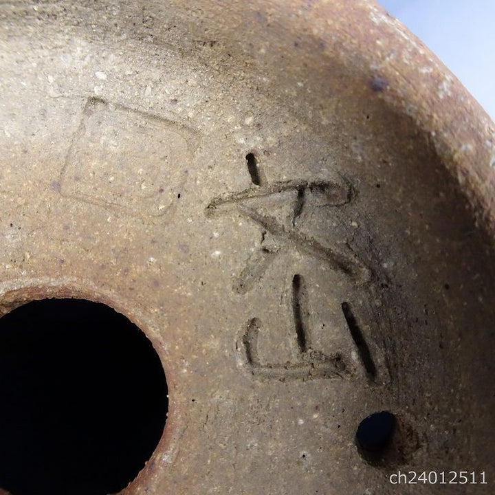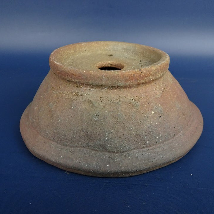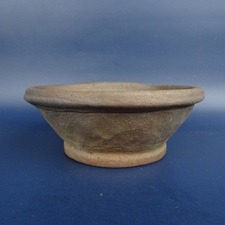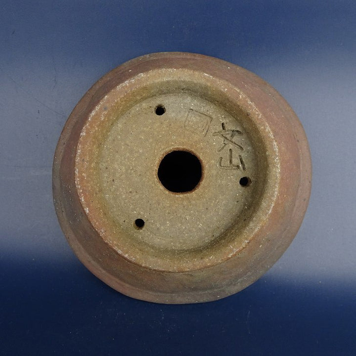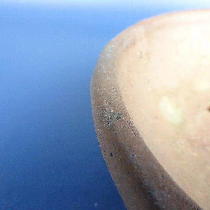 中古盆栽鉢 文山 越前文山 小型 長辺 約13cm 丸鉢 外縁 焼締め 泥鉢 中古鉢 q1198414675