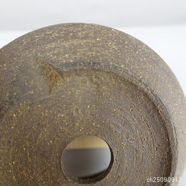 中古盆栽鉢 春山 小鉢 長辺 約 7.1cm 丸鉢 外縁 泥鉢 中古鉢 f1212035986