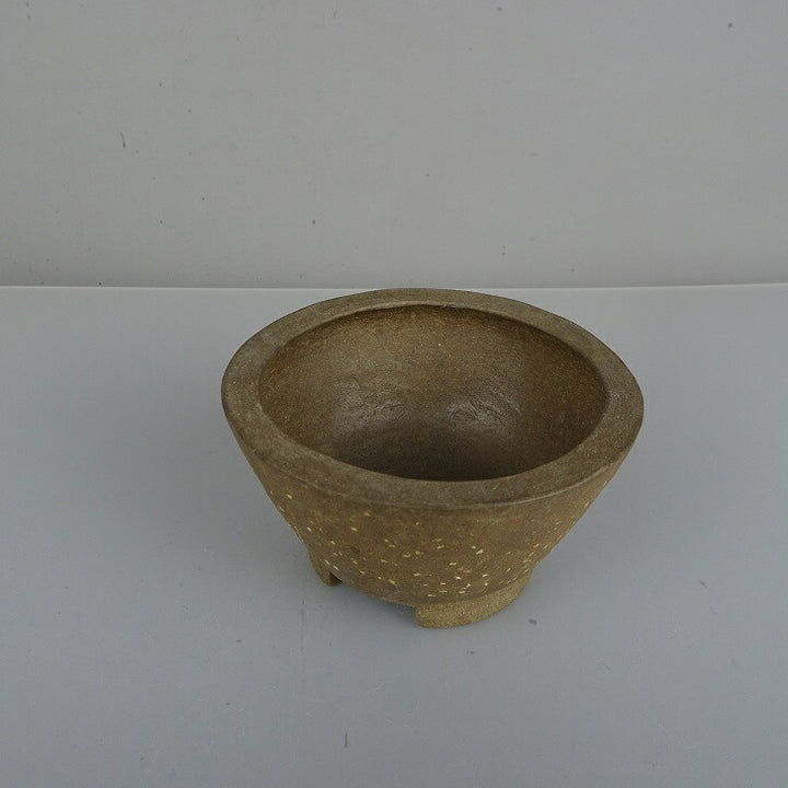 中古盆栽鉢 春山 小鉢 長辺 約 8.8cm 丸鉢 梨皮 泥鉢 中古鉢 v1212042864