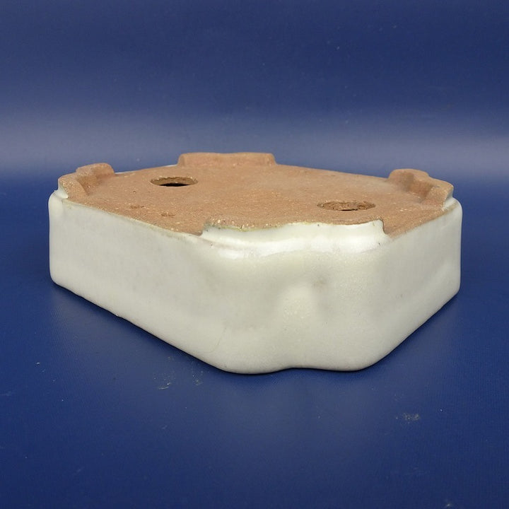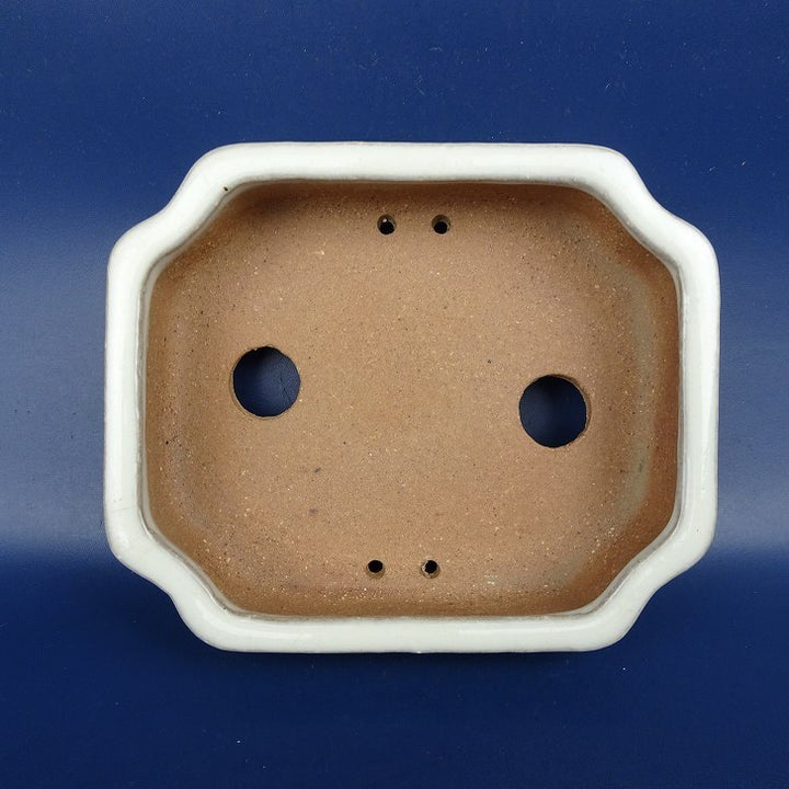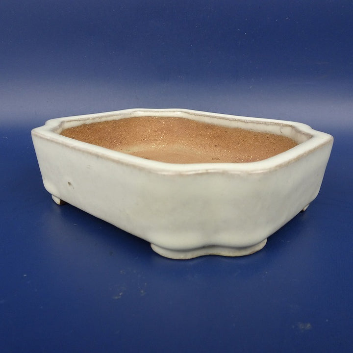 中古盆栽鉢 江小林 小型 長辺 約12cm 長方鉢 隅入 白釉 中国鉢 中古鉢 s1198410944