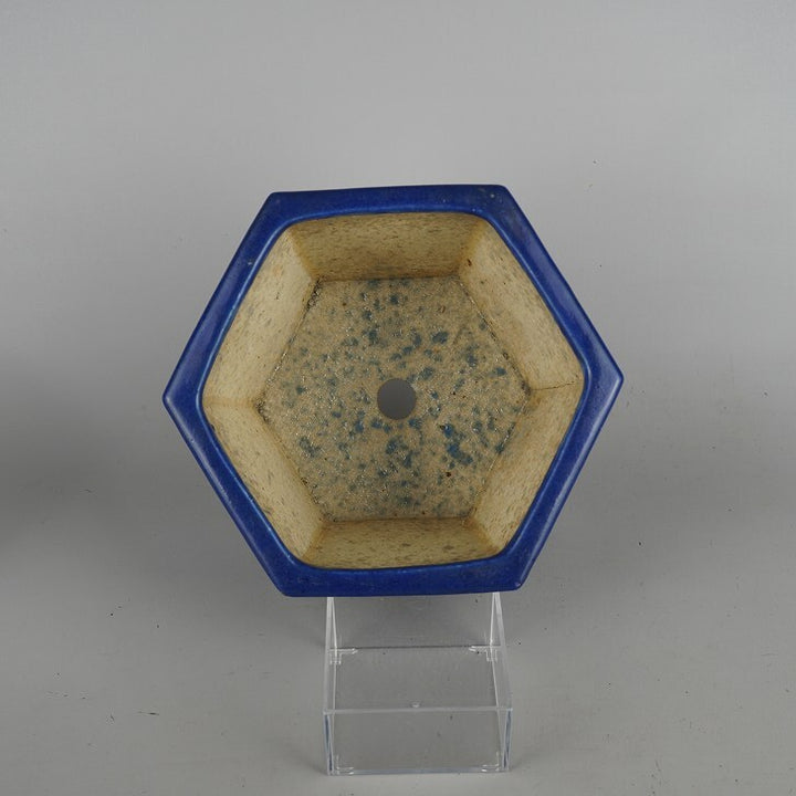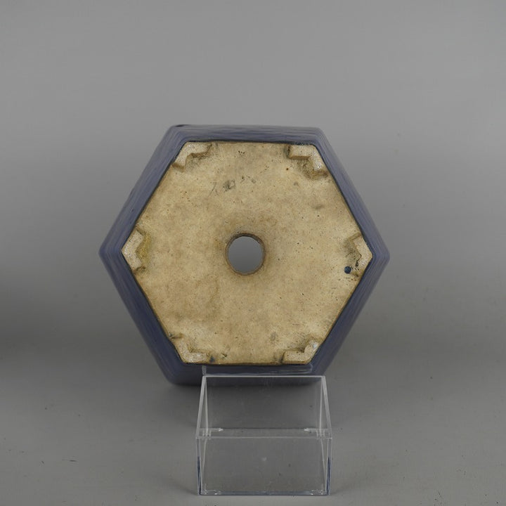 盆栽鉢 瀬戸焼 中型 長辺 約21cm 六角鉢 釉薬 現品 中古鉢 品名瀬戸焼...