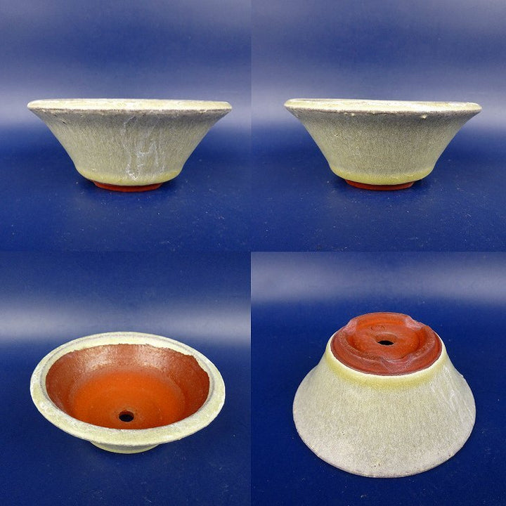 【中古】盆栽鉢 燿山 小型 長辺 約10cm 丸鉢 白釉 現品 中古鉢 燿山 本名 清水正和 創業以前から常滑の成型職人として焼物に携わり、独立後釉物小鉢などの手押成形品を手がける。型、釉物ともに幅広く、渋い色合いや窯変物に定評がある。 昭和50年代、子息英明氏が工房に合流、明るい現代風の釉が加わった。...