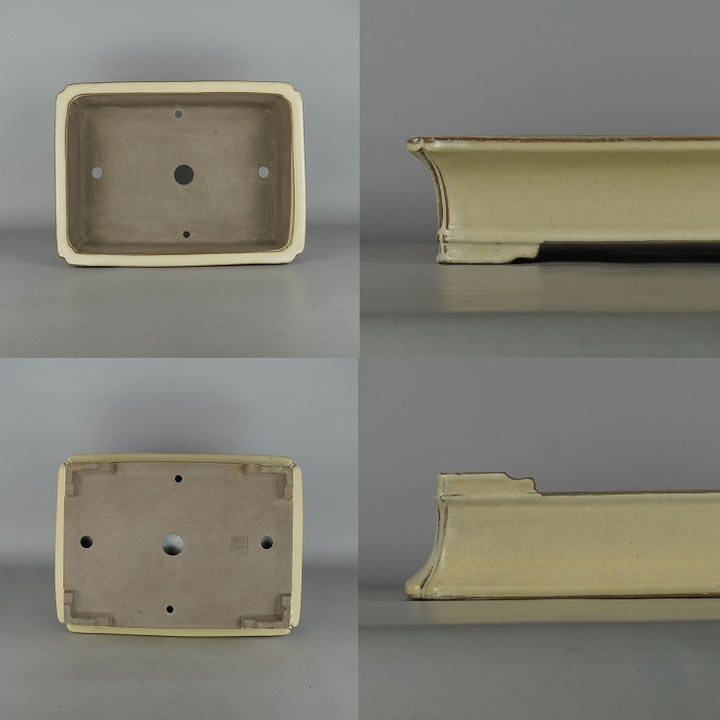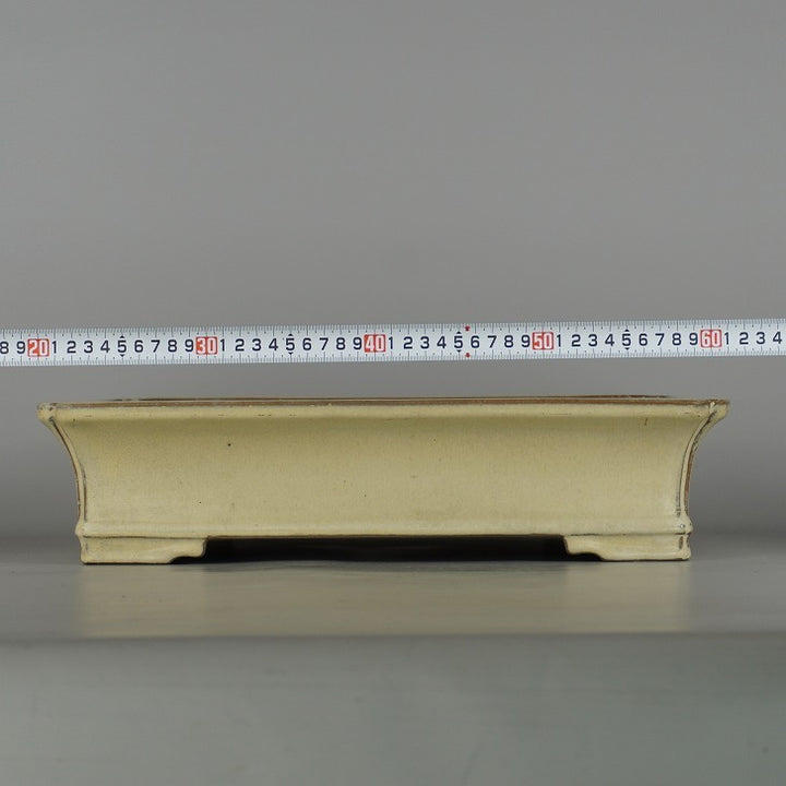 中古盆栽鉢 真山造 寺畑陶園 大型 長辺 約 41.5cm 長方鉢 隅入 下帯 釉薬 中古鉢 c1198404997