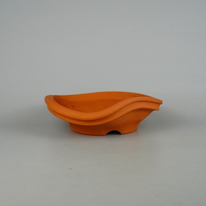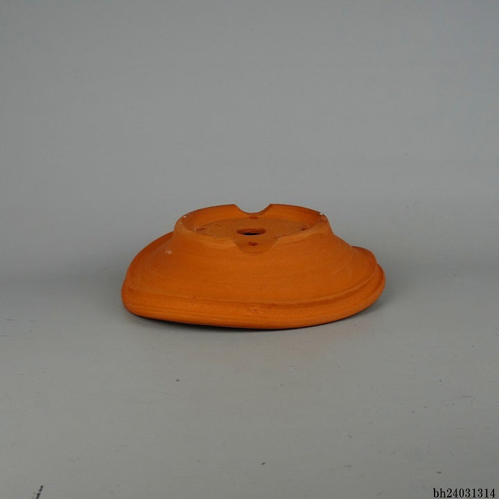 盆栽鉢 竹鳳 中型 長辺 約21cm 変形 丸鉢 泥物 現品 中古鉢 品名竹鳳...