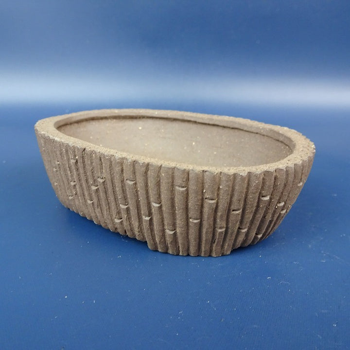 【中古】盆栽鉢 翠園 小型 長辺 約10.7cm 楕円鉢 泥鉢 現品 中古鉢...