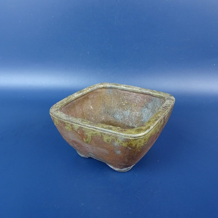 中古盆栽鉢 良寛 小鉢 長辺 約 8.8cm 正方鉢 釉薬 中古鉢 t1198414202