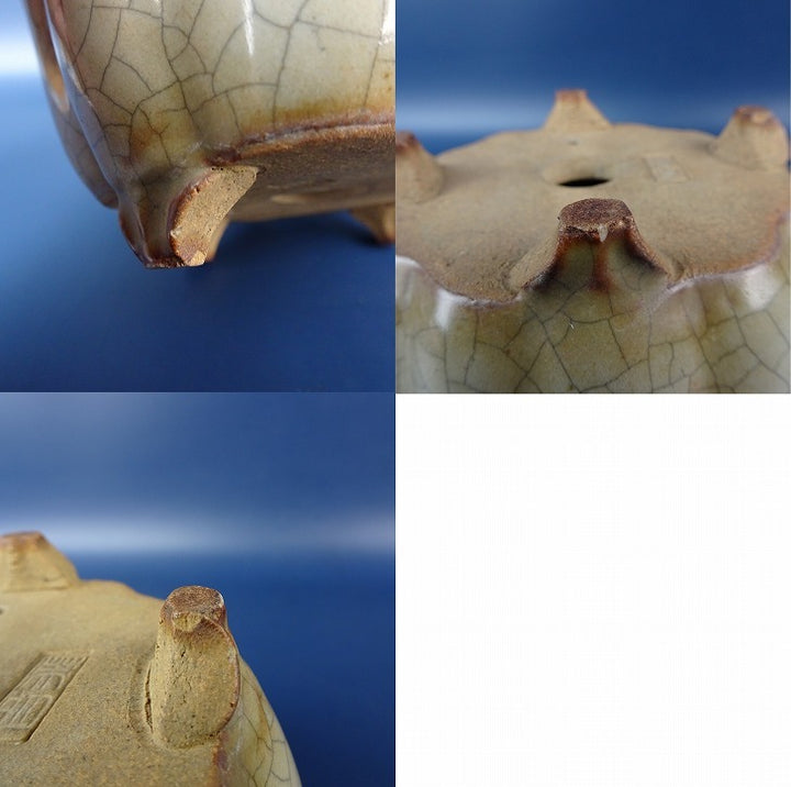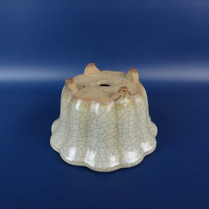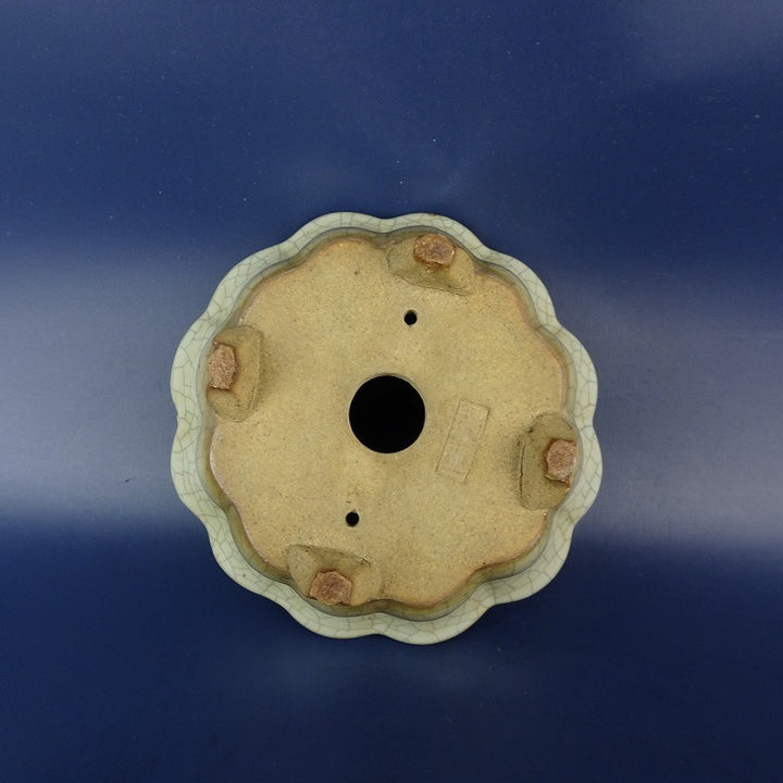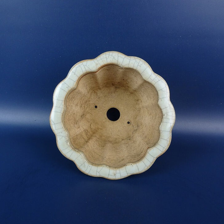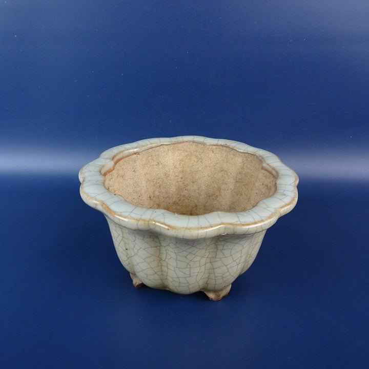 中古盆栽鉢 英明 小型 長辺 約 13.7cm 輪花鉢 外縁 貫入 釉薬 中古鉢 q1198416265