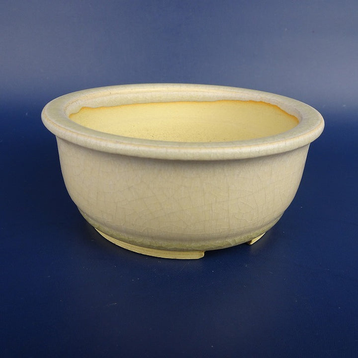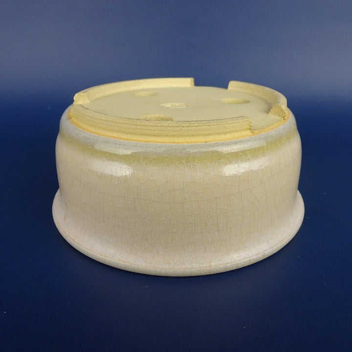 中古盆栽鉢 英明 小型 長辺 約10.7cm 丸鉢 外縁 釉薬 中古鉢 s1198410645