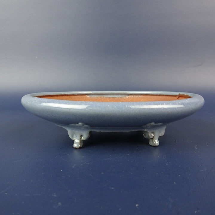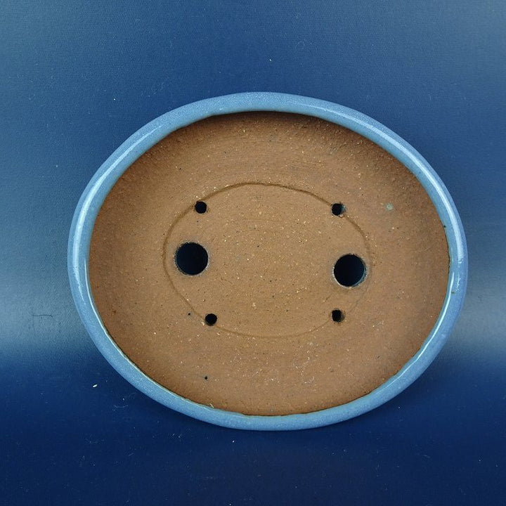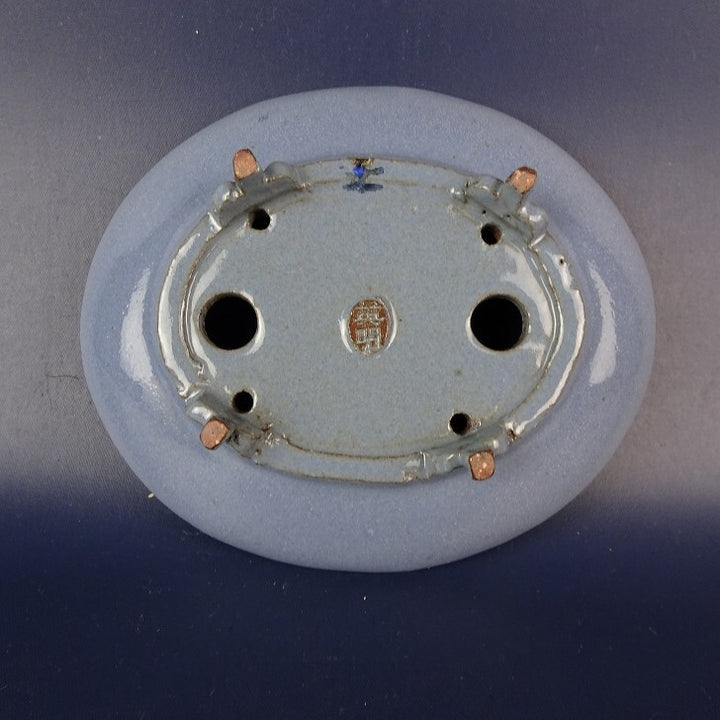 中古盆栽鉢 英明 小型 長辺 約11.2cm 楕円鉢 釉薬 中古鉢 w1198415254