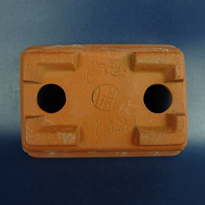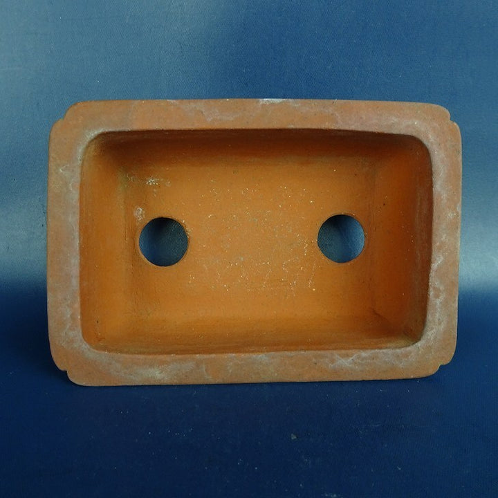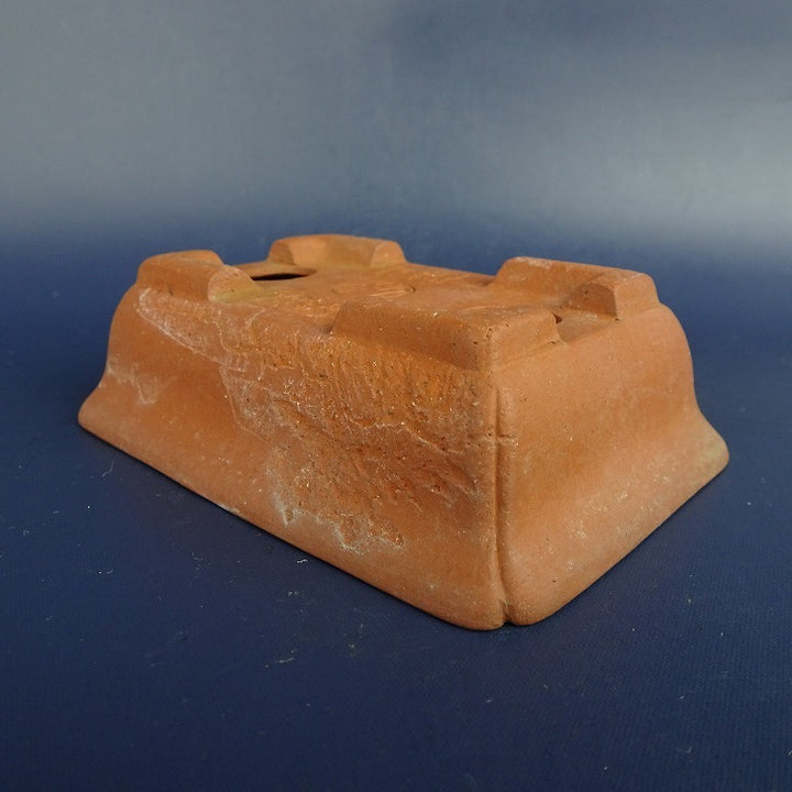【中古】盆栽鉢 萬留平 小型 長辺 約10.3cm 長方鉢 外縁 泥物 現品 中古鉢 品名萬留平...
