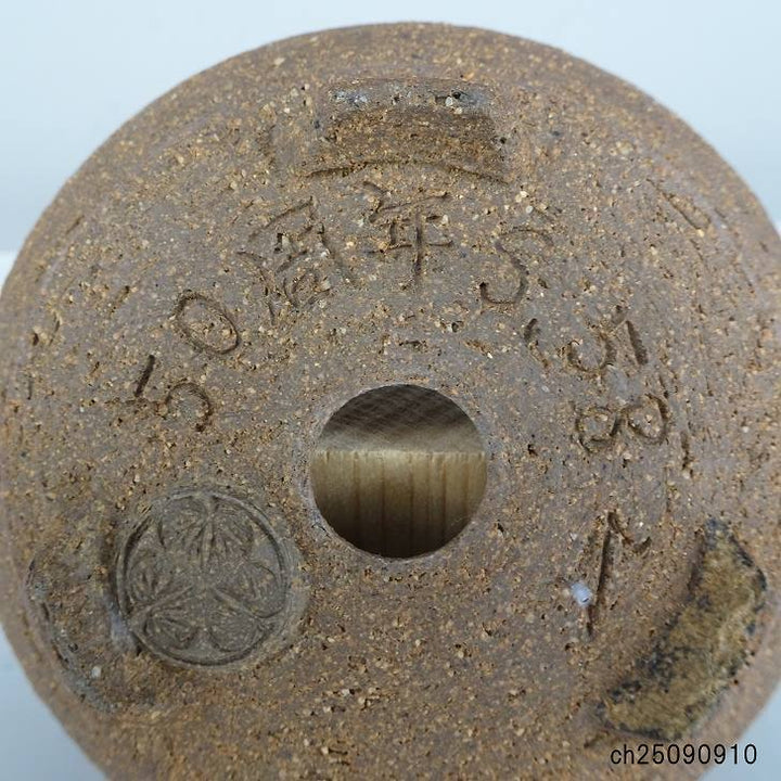 中古盆栽鉢 落款あり 小鉢 長辺 約 8.5cm 丸鉢 泥鉢 中古鉢 u1212038380