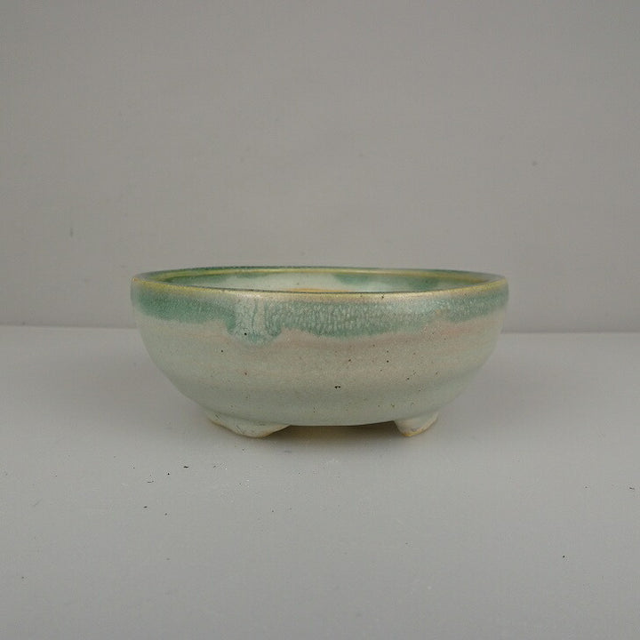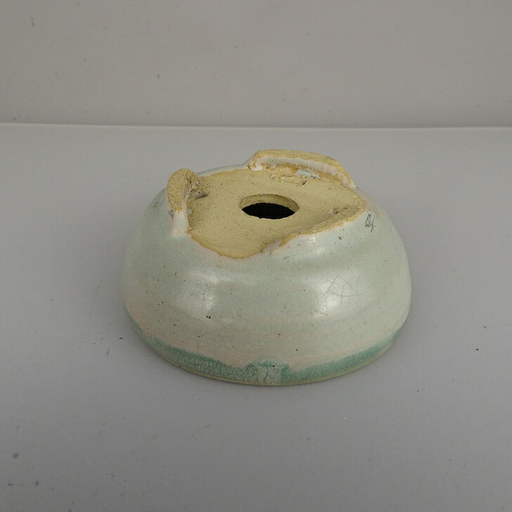 中古盆栽鉢 落款あり 小鉢 長辺 約 9.5cm 丸鉢 釉薬 中古鉢 h1212037928