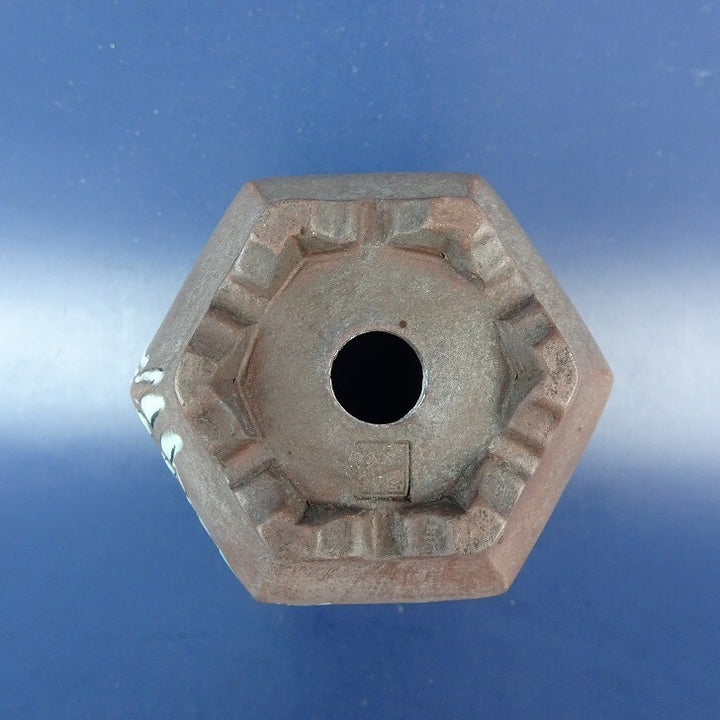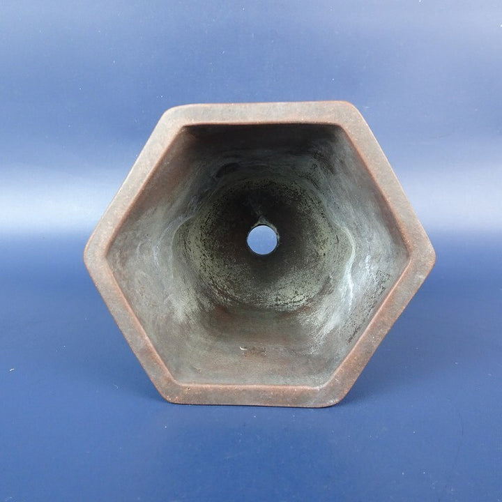 【中古】盆栽鉢 落款あり 小鉢 長辺 約8.7cm 六角鉢 外縁 泥鉢 色絵 現品 中古鉢 品名落款あり...