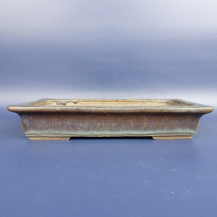 中古盆栽鉢 落款なし 中型 長辺 約21.5cm 長方鉢 外縁 支那鉢 中古鉢 b1198422164