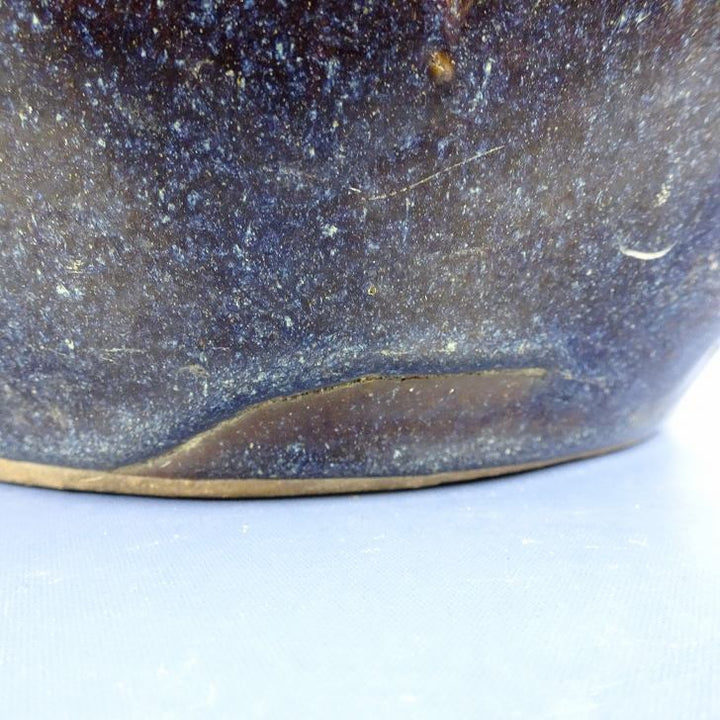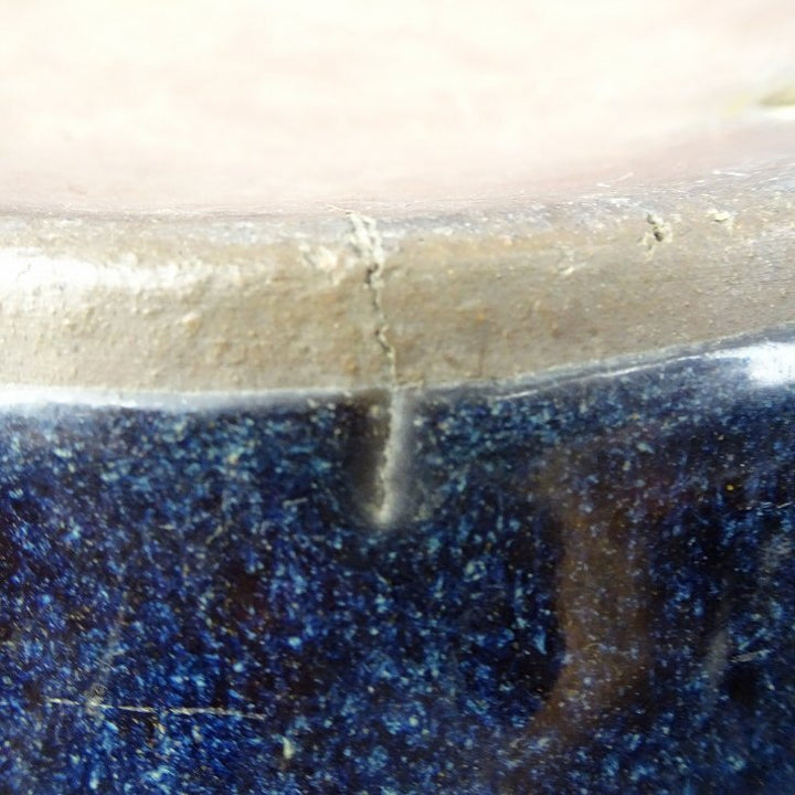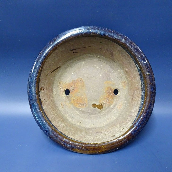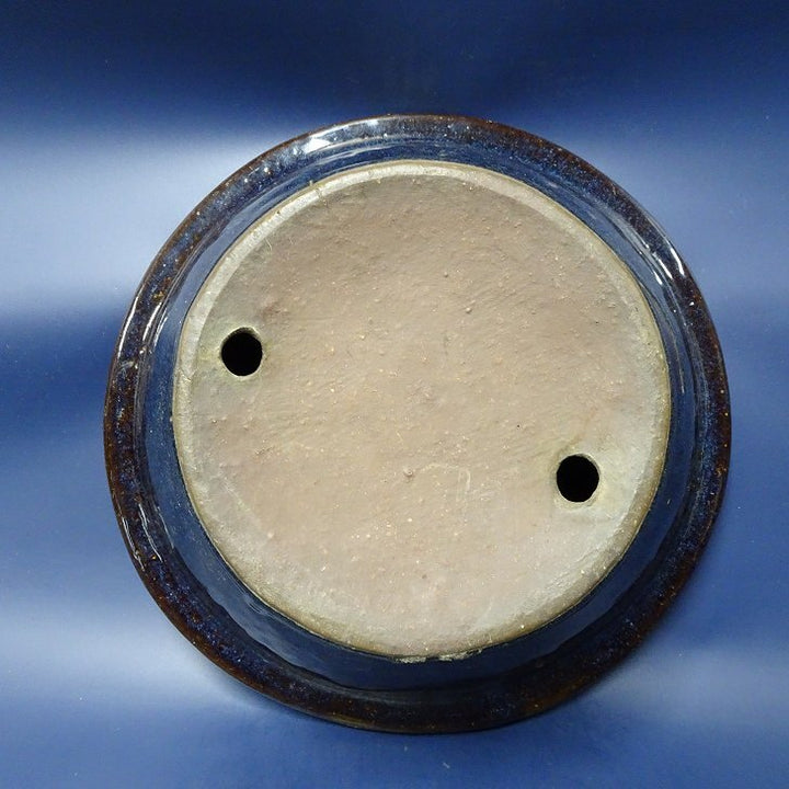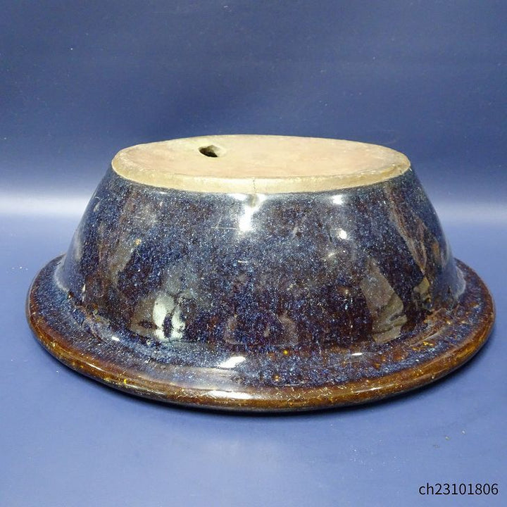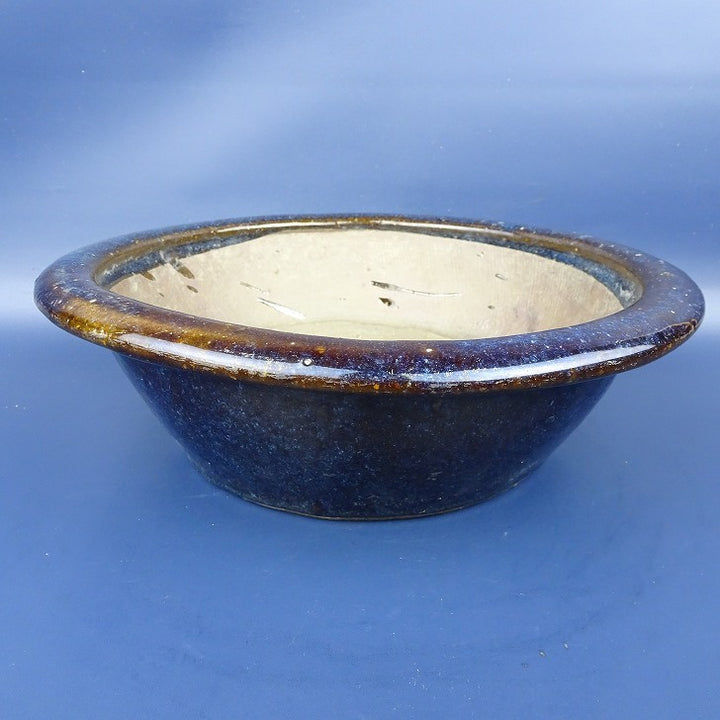 中古盆栽鉢 落款なし 中型 長辺 約26.5cm 丸鉢 外縁 ナマコ釉 釉薬 中国鉢 中古鉢 k1198407240