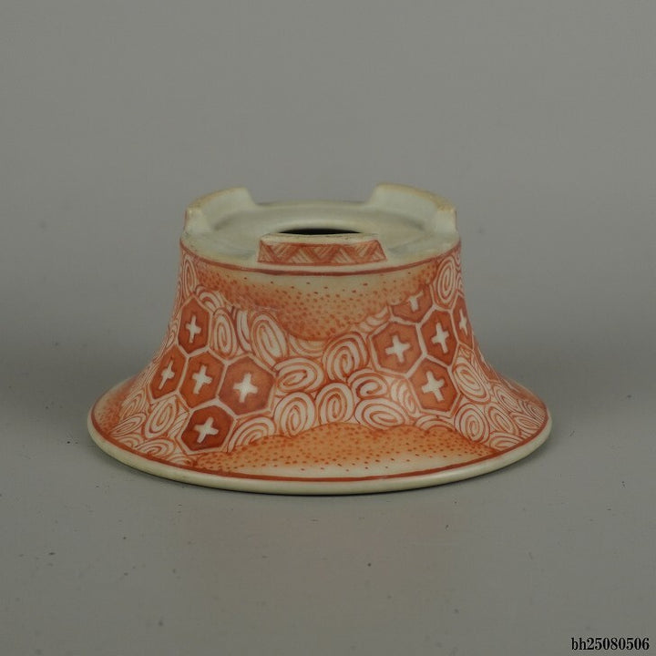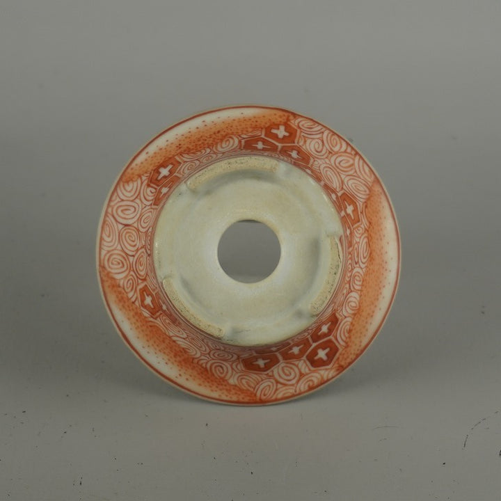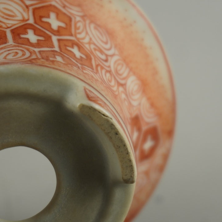 盆栽鉢 落款なし 小型 長辺 約 10cm 丸鉢 外縁 赤絵 模様 鑑賞 観賞用 現品 中古鉢 品名落款なし...