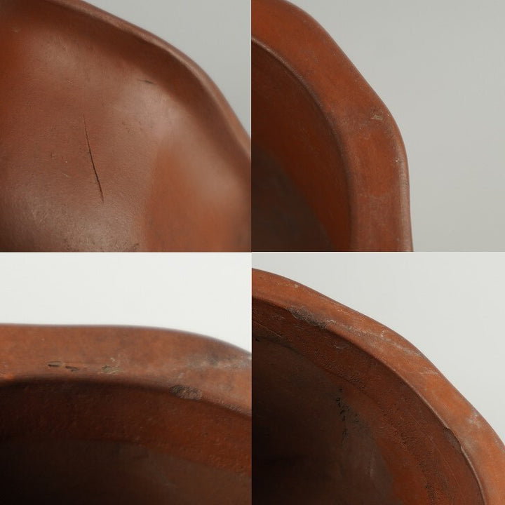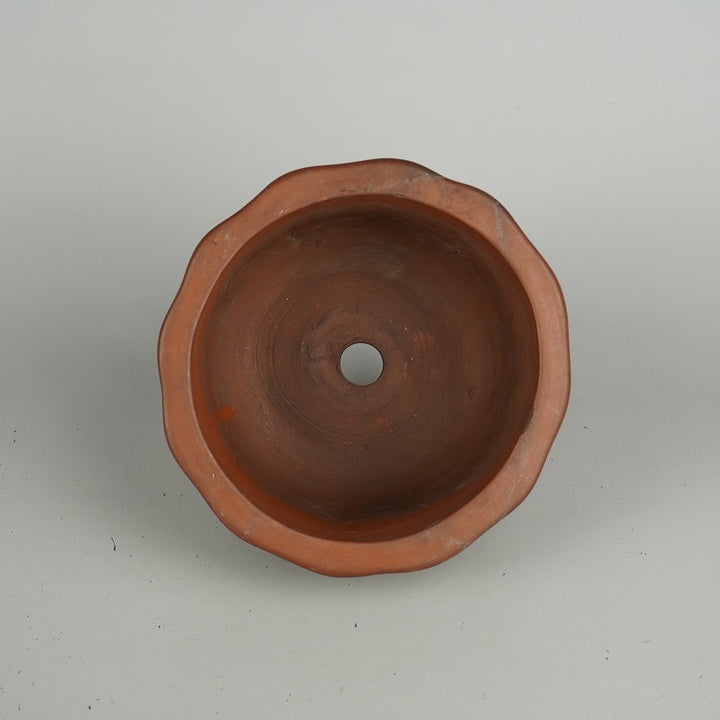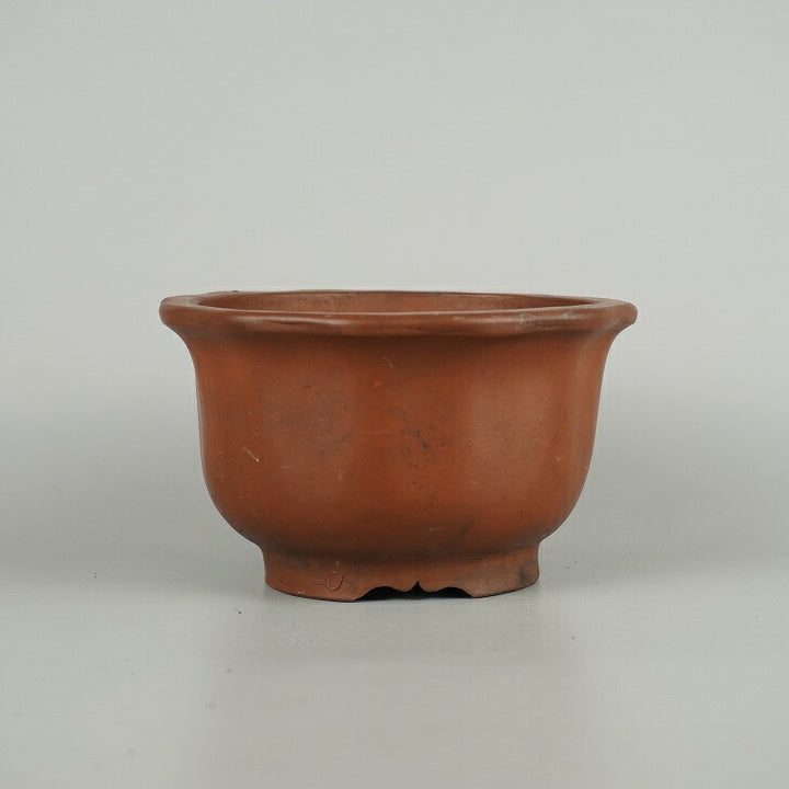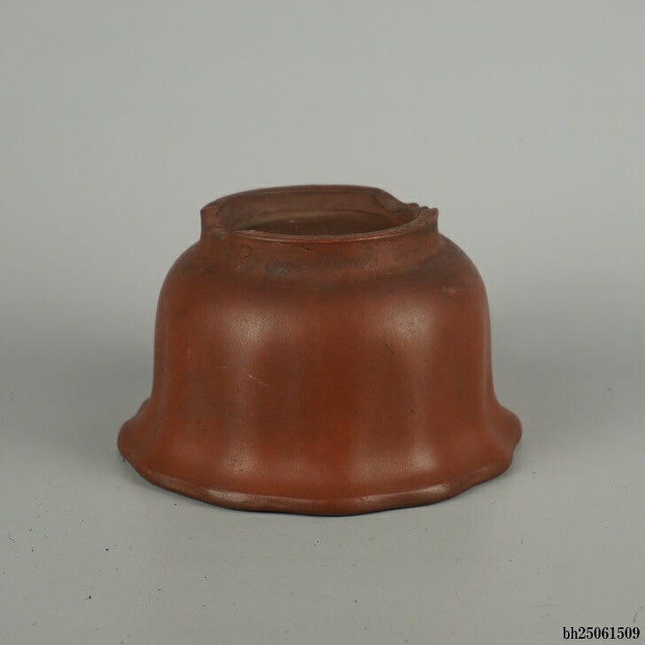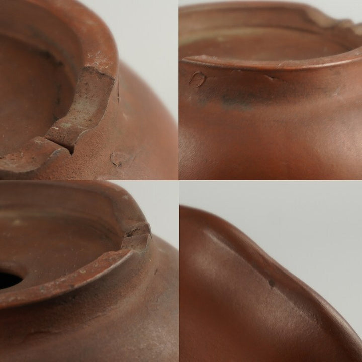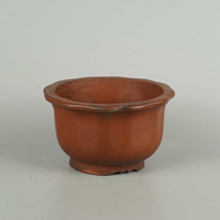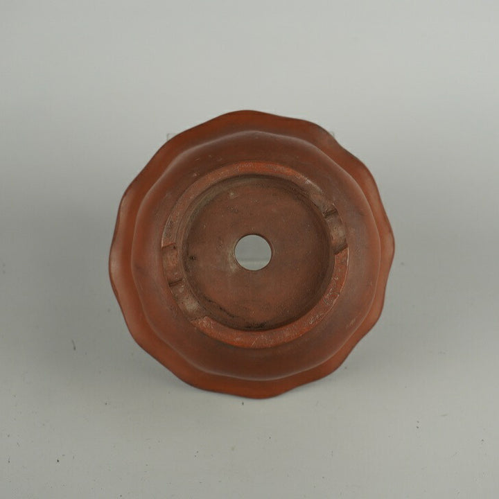 盆栽鉢 落款なし 小型 長辺 約 14.5cm 輪花鉢 外縁 泥物 現品 中古鉢 品名落款なし...