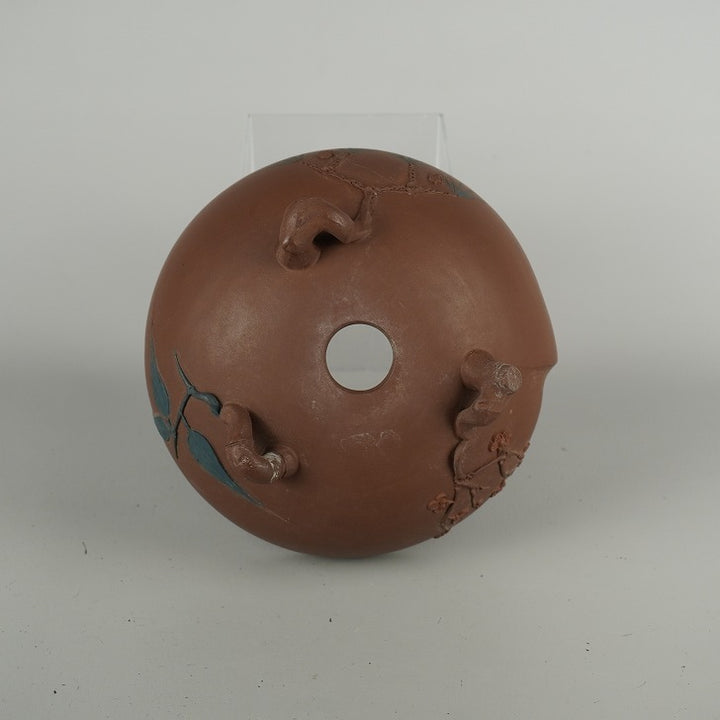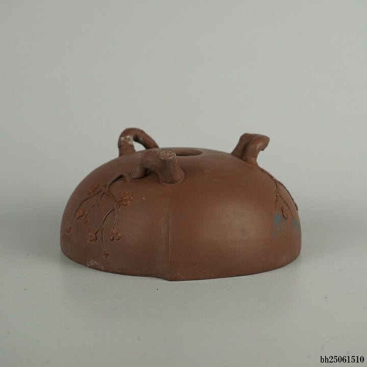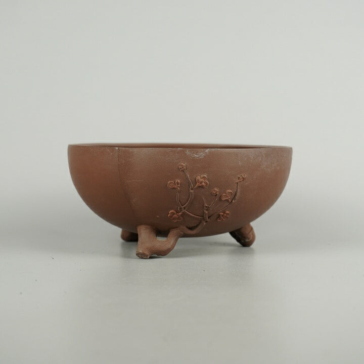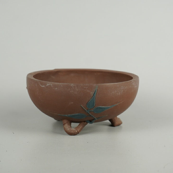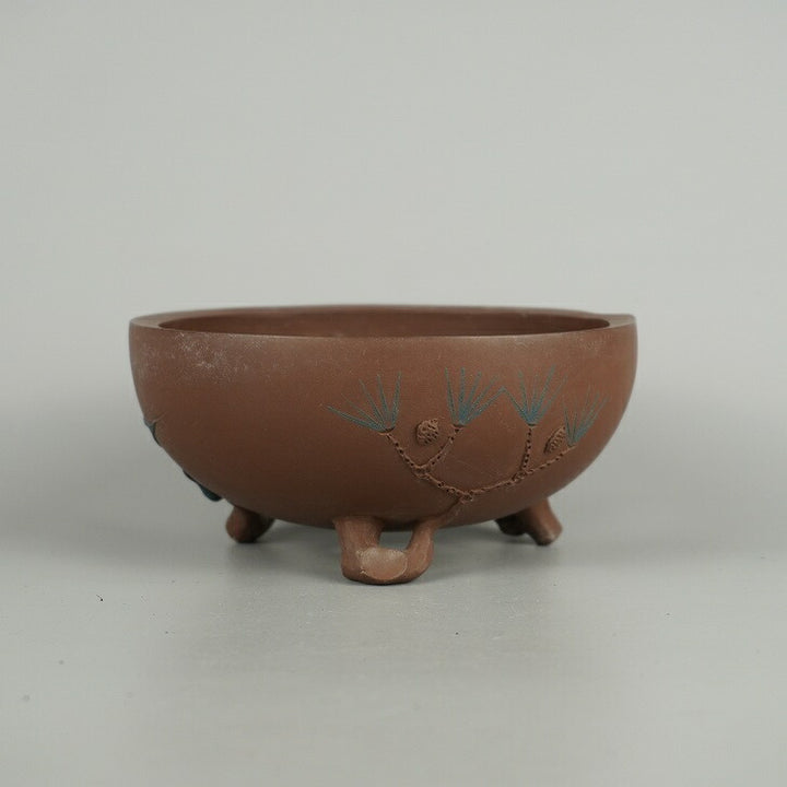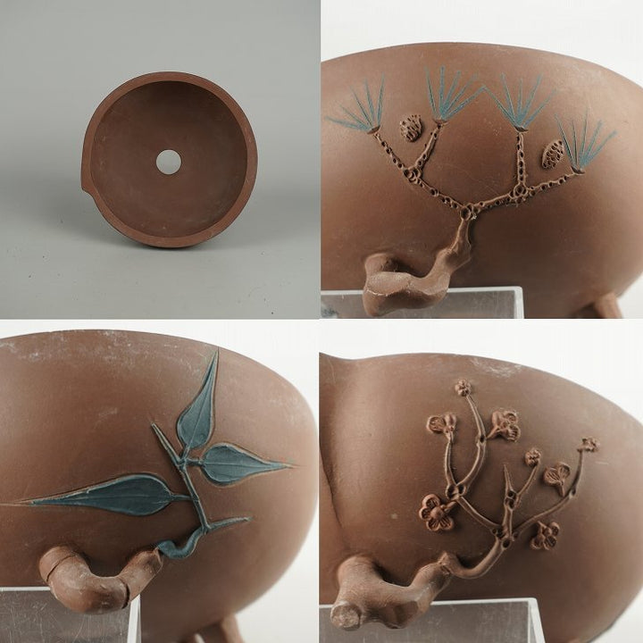 盆栽鉢 落款なし 小型 長辺 約 15cm 丸鉢 松 竹 梅 泥物 観賞用 現品 中古鉢 品名落款なし...