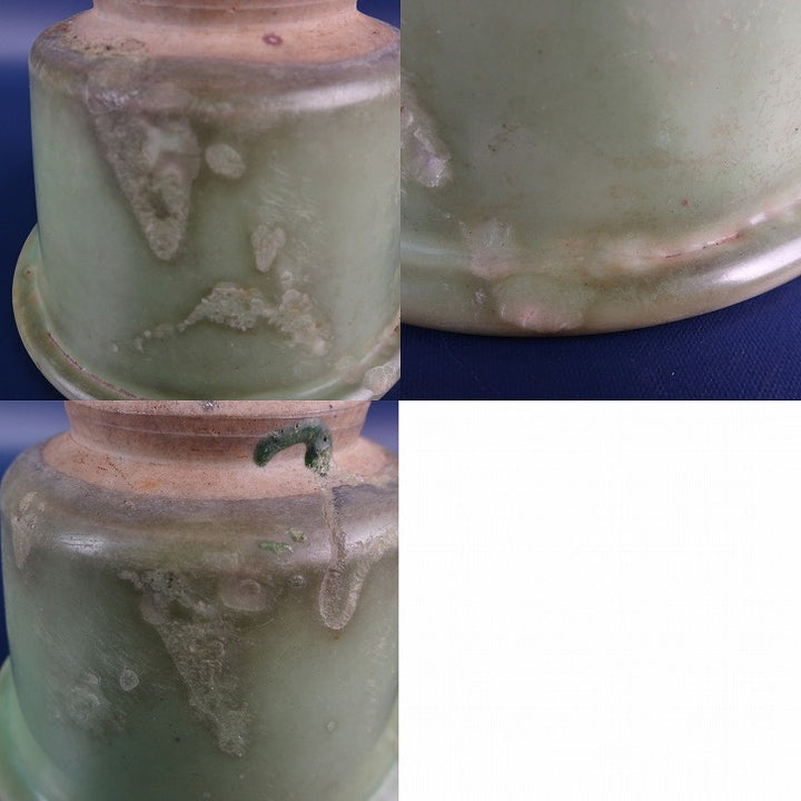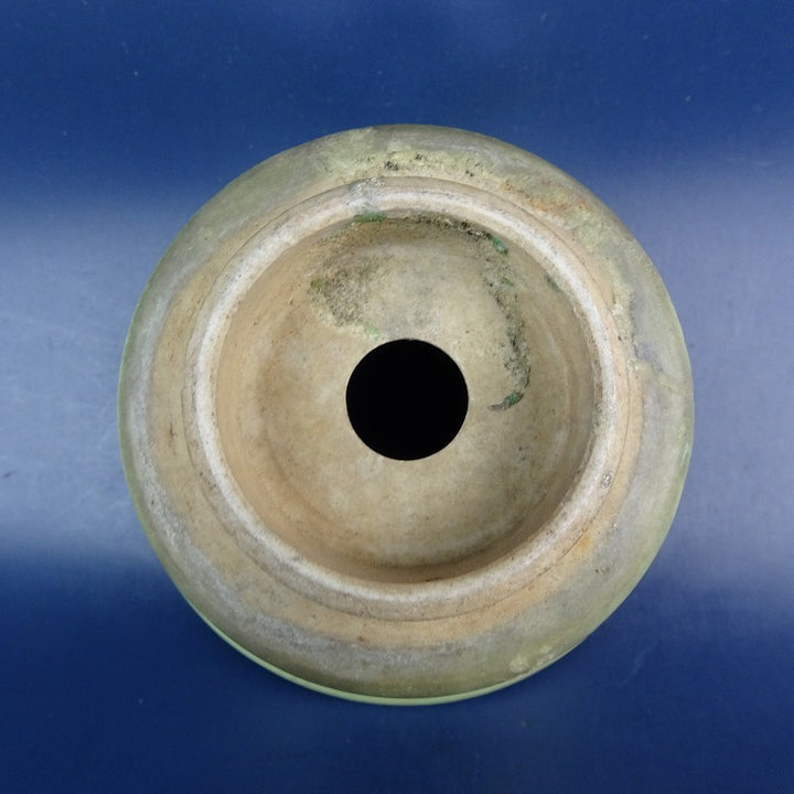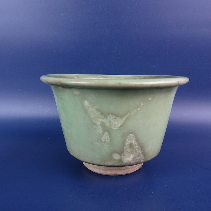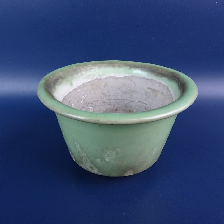 中古盆栽鉢 落款なし 小型 長辺 約12.2cm 丸鉢 外縁 青磁 中国鉢 中古鉢 q1198415870