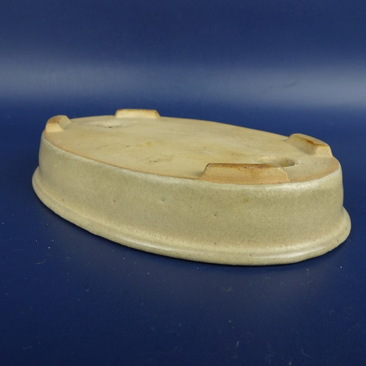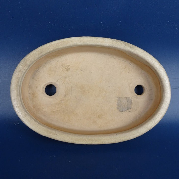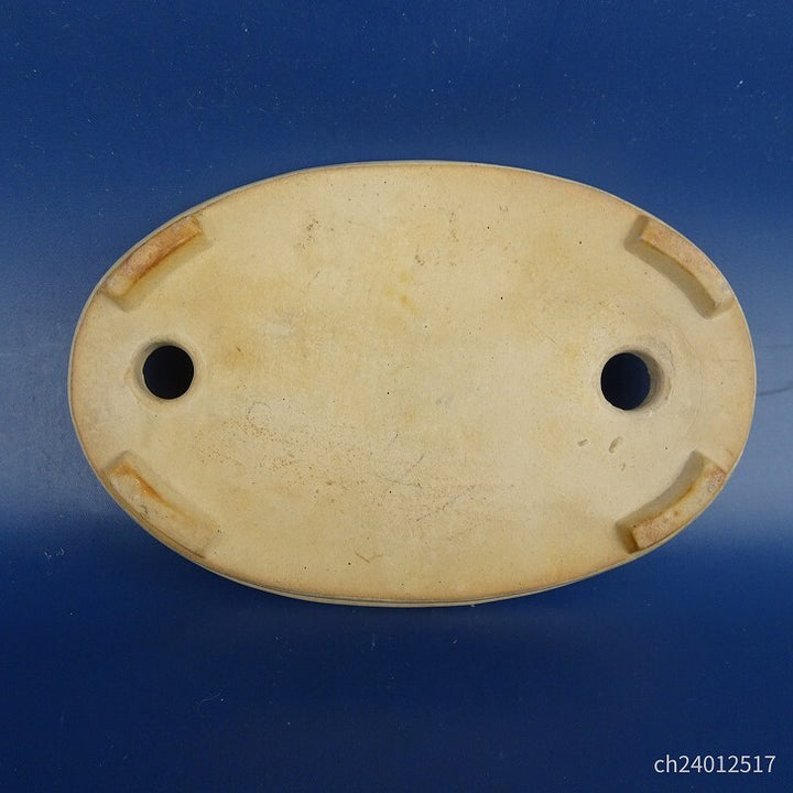 【中古】盆栽鉢 落款なし 小型 長辺 約14cm 楕円鉢 外縁 釉薬 現品 中古鉢 品名落款なし...