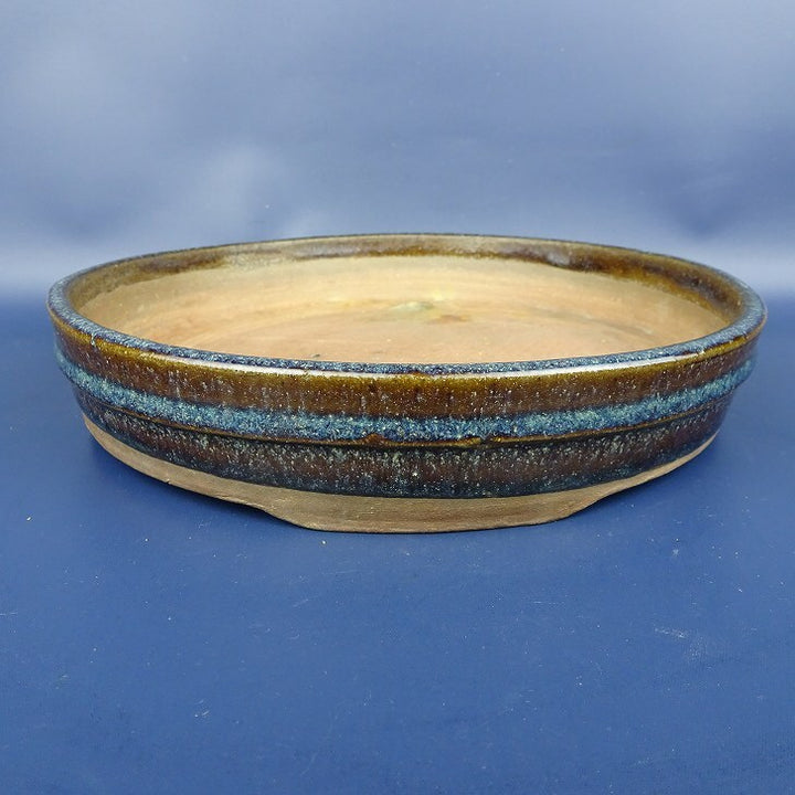 【中古】盆栽鉢 葛明昌造 中型 長辺 約21cm 丸鉢 ナマコ釉 釉薬 中国鉢 現品 中古鉢 品 名葛明昌造 サイズ高さ 約4センチ...