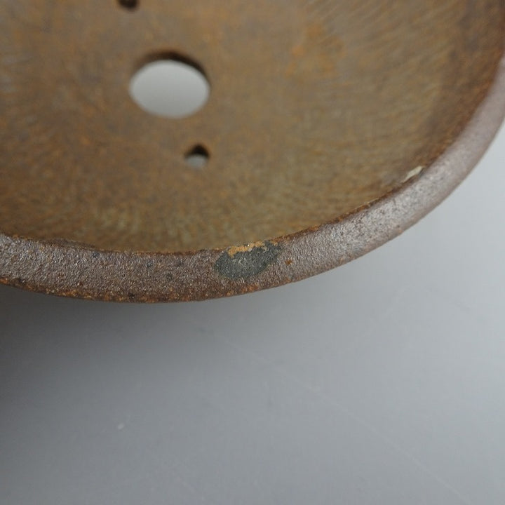 中古盆栽鉢 虹 小鉢 長辺 約 9.2cm 丸鉢 泥鉢 中古鉢 h1212036332