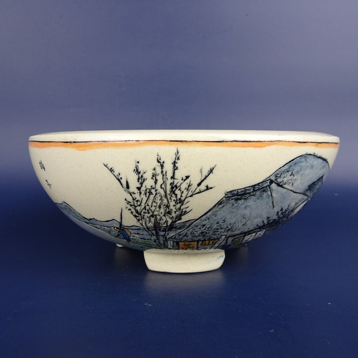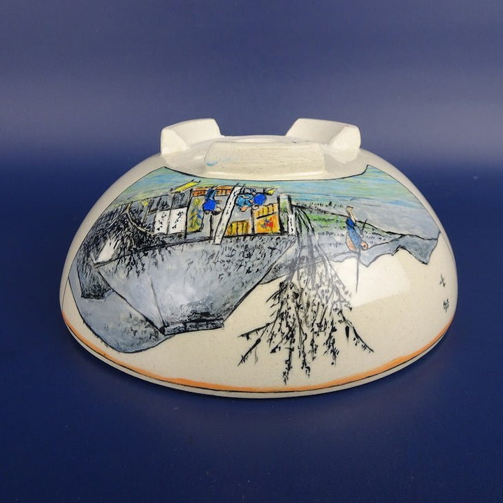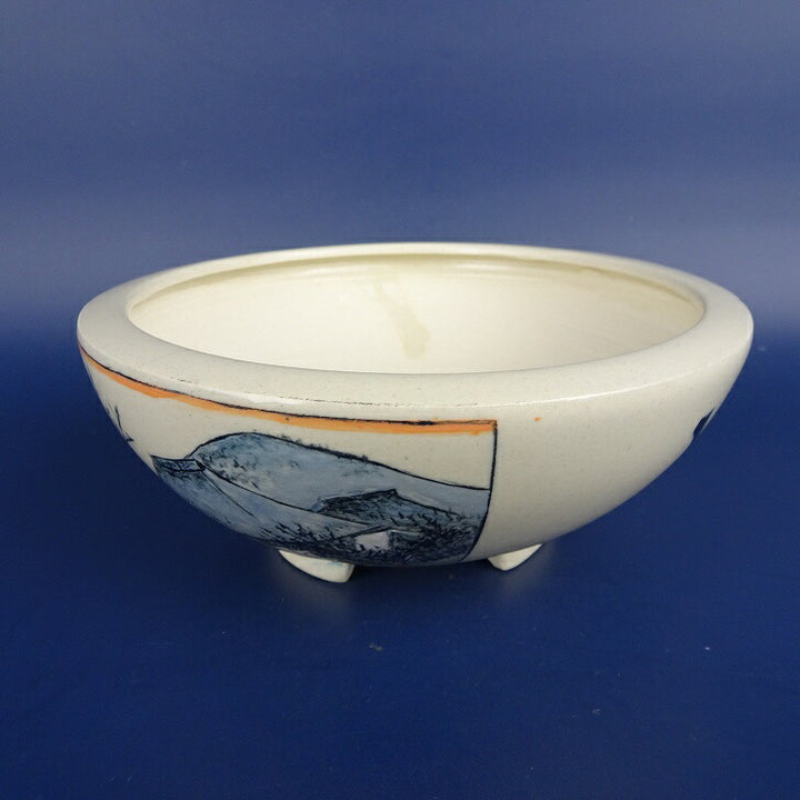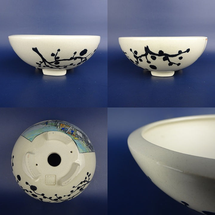 【中古】盆栽鉢 蝉山 小型 長辺 約14.7cm 丸鉢 色絵 風景画 現品 中古鉢 一つ一つ丁寧に作られた絵鉢です。...