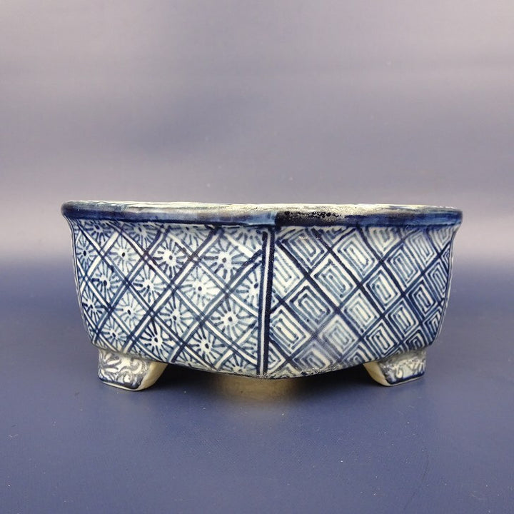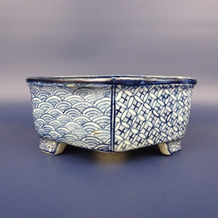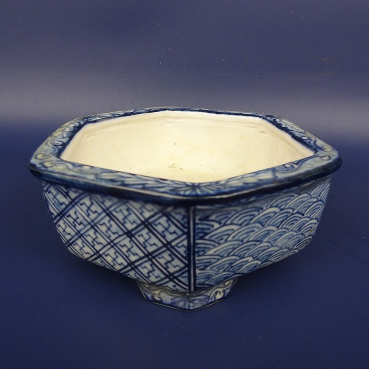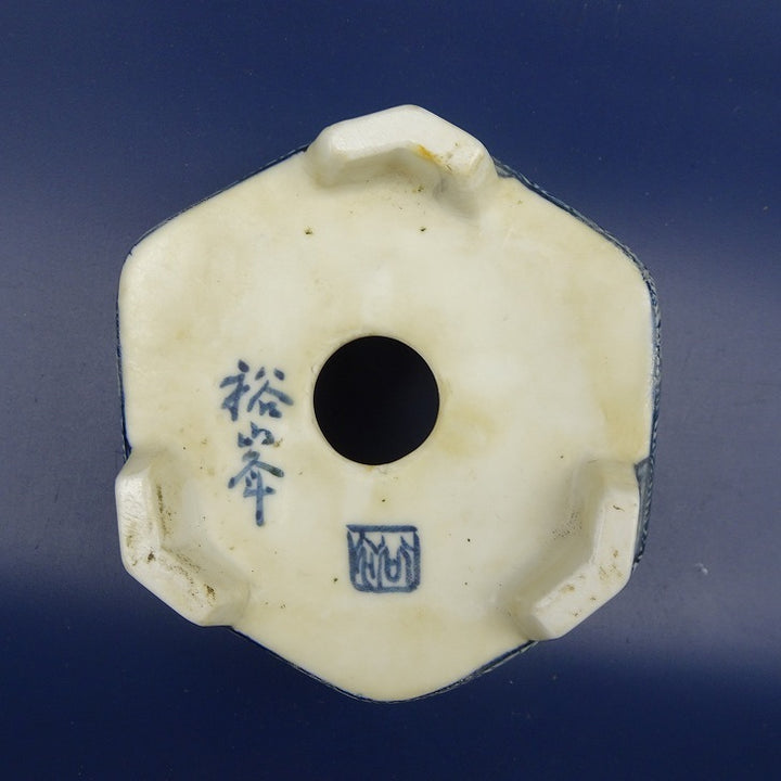 中古盆栽鉢 裕峯 小型 長辺 約11.5cm 六角鉢 外縁 染付 箱付 中古鉢 k1198412469
