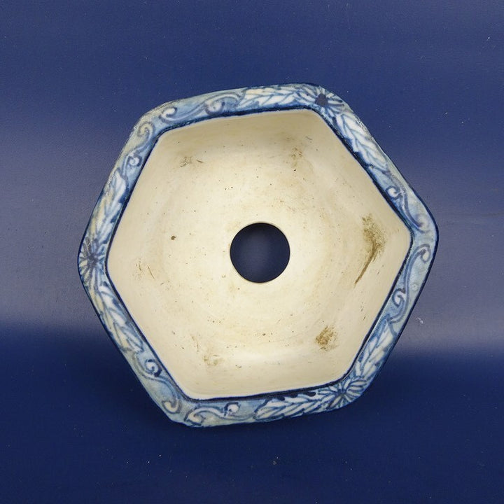 【中古】盆栽鉢 裕峯 小型 長辺 約11.5cm 六角鉢 外縁 染付 箱付 現品 中古鉢 商 品 名裕峯 (箱付) サ イ ズ高さ 約4.5センチ...