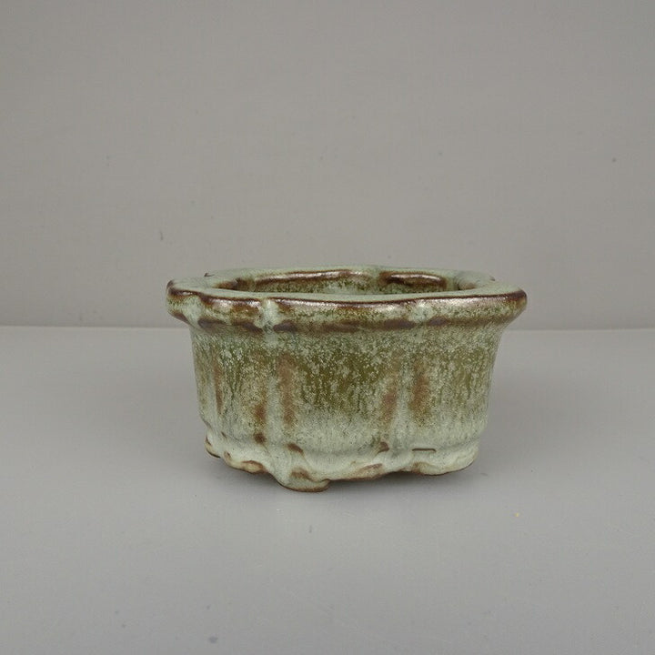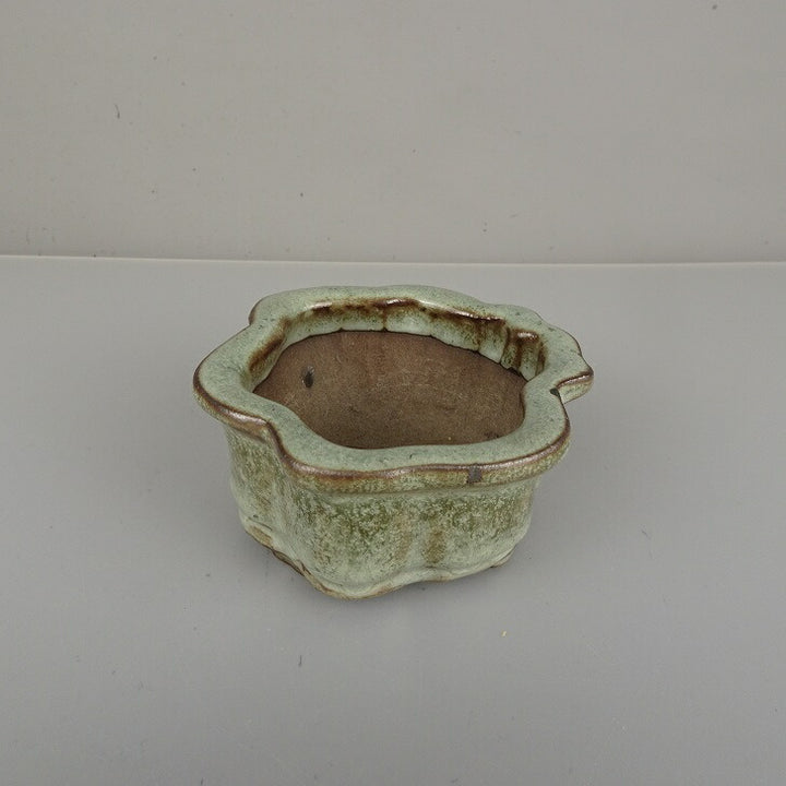 【中古】盆栽鉢 陶翠園造 小鉢 長辺 約9.1cm 変形鉢 釉薬 鑑賞 観賞用 現品 中古鉢 品名陶翠園造...