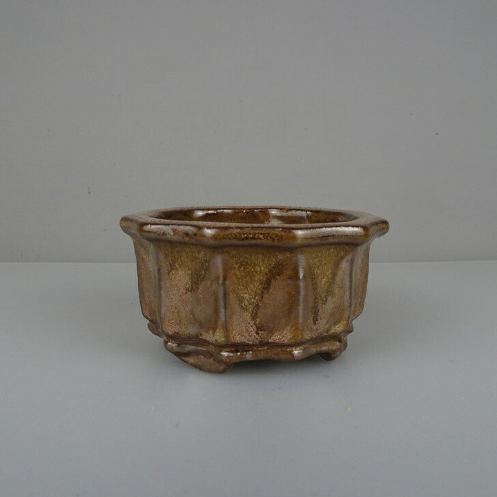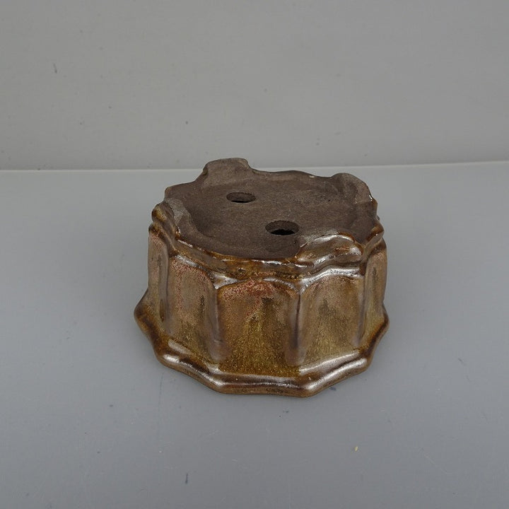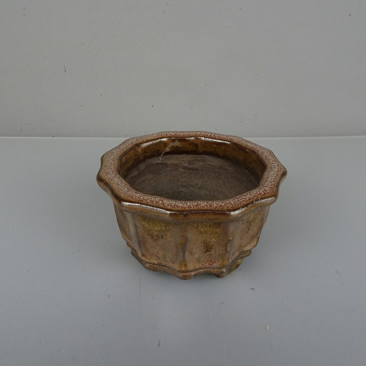 中古盆栽鉢 陶翠園造 小鉢 長辺 約 9cm 輪花鉢 釉薬 中古鉢 o1212041116
