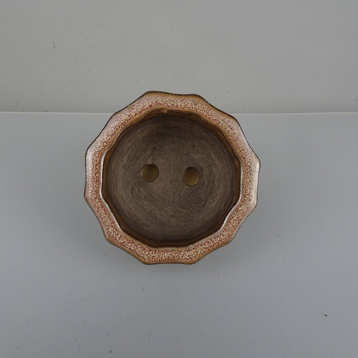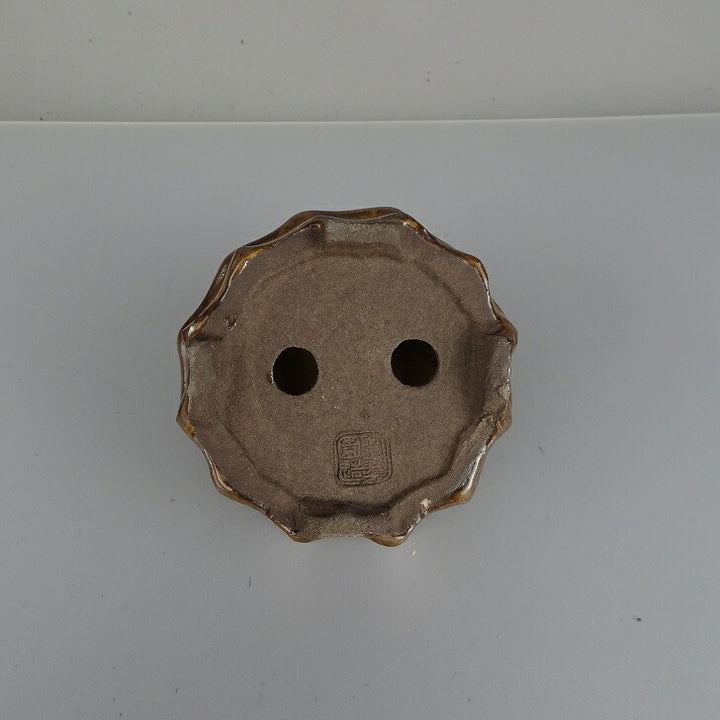 盆栽鉢 陶翠園造 小鉢 長辺 約 9cm 輪花鉢 釉薬 現品 中古鉢 品名陶翠園造...