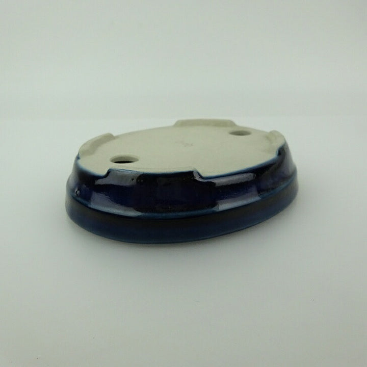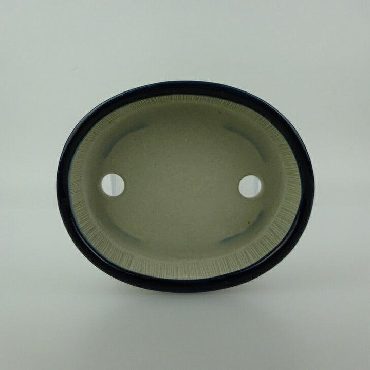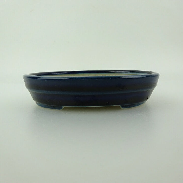 中古盆栽鉢 青香 小型 長辺 約 11.8cm 楕円鉢 中帯 釉薬 中古鉢 w1198408289
