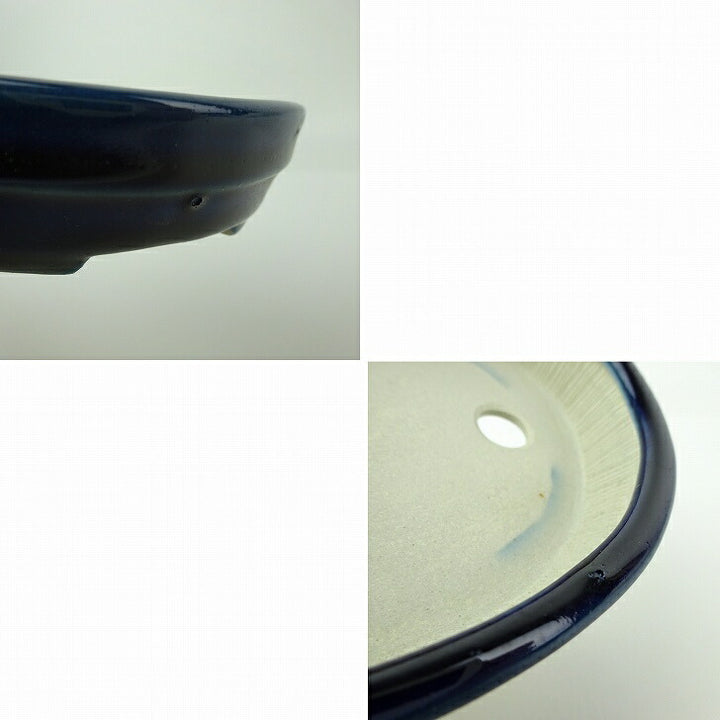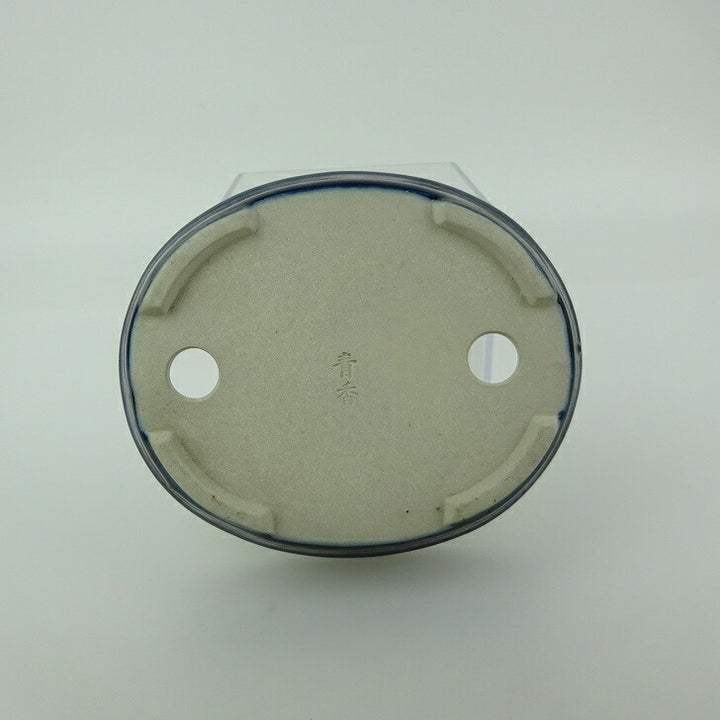 盆栽鉢 青香 小型 長辺 約 11.8cm 楕円 鉢 中帯 釉薬 現品 中古鉢 品名青香...