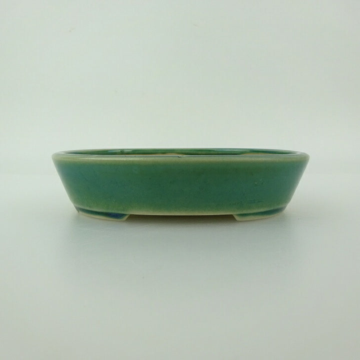盆栽鉢 青香 小型 長辺 約 11.9cm 楕円 鉢 釉薬 現品 中古鉢 品名青香...