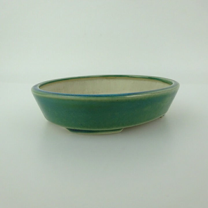 中古盆栽鉢 青香 小型 長辺 約 11.9cm 楕円鉢 釉薬 中古鉢 b1198421624
