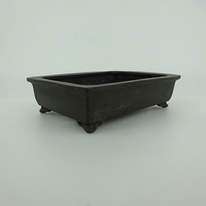 中古盆栽鉢 青香 小型 長辺 約 12.6cm 長方鉢 外縁 雲足 泥物 中古鉢 v1198437330