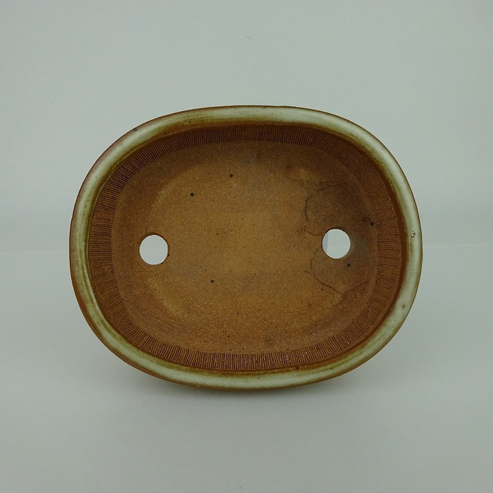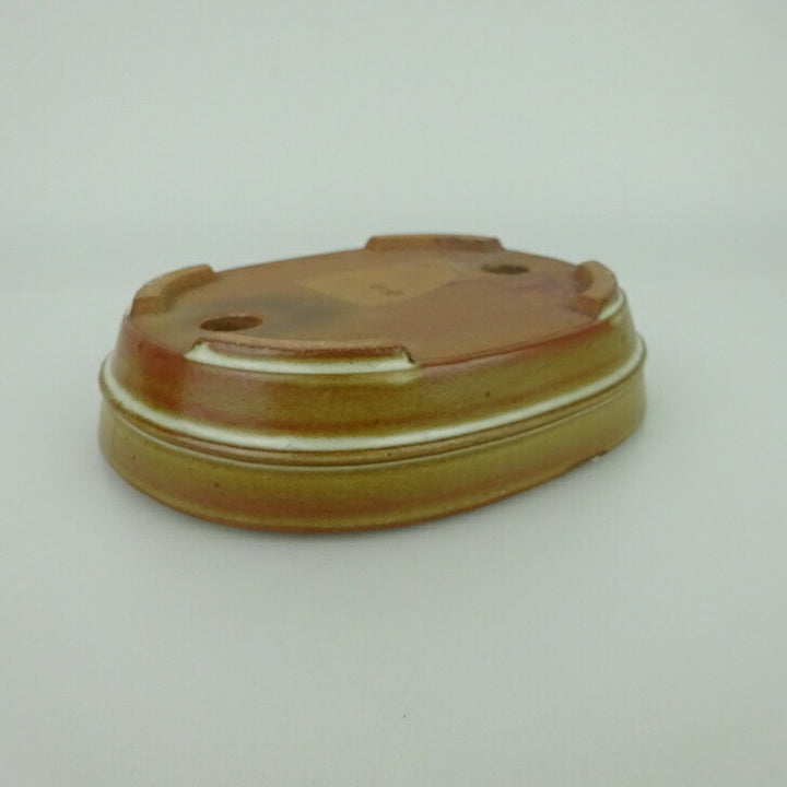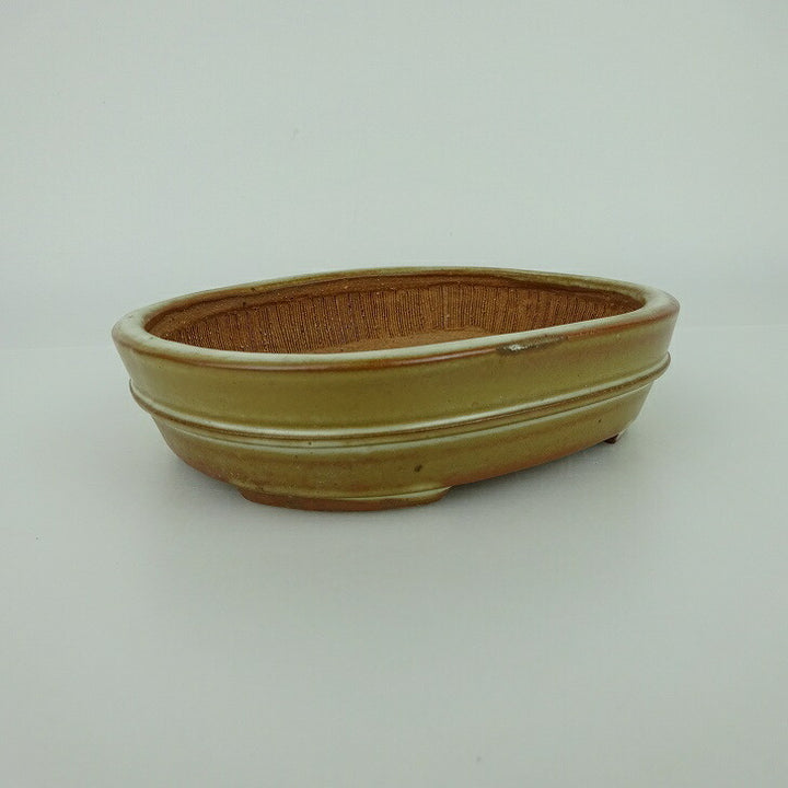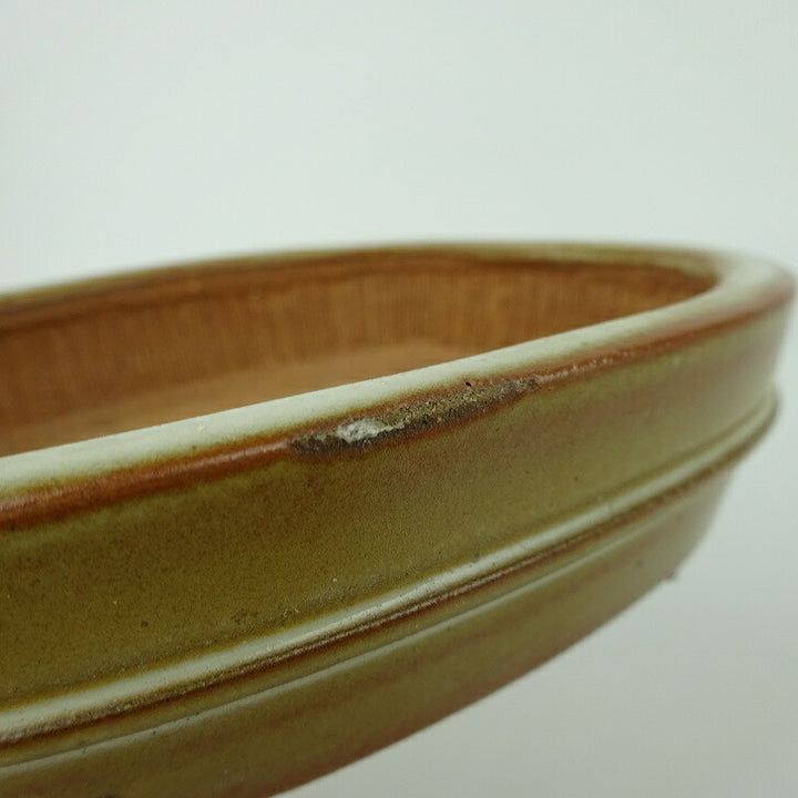 盆栽鉢 青香 小型 長辺 約 14.3cm 楕円鉢 中帯 釉薬 現品 中古鉢 品名青香...