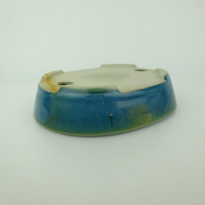 盆栽鉢 青香 小型 長辺 約 14.5cm 楕円 鉢 釉薬 現品 中古鉢 品名青香...