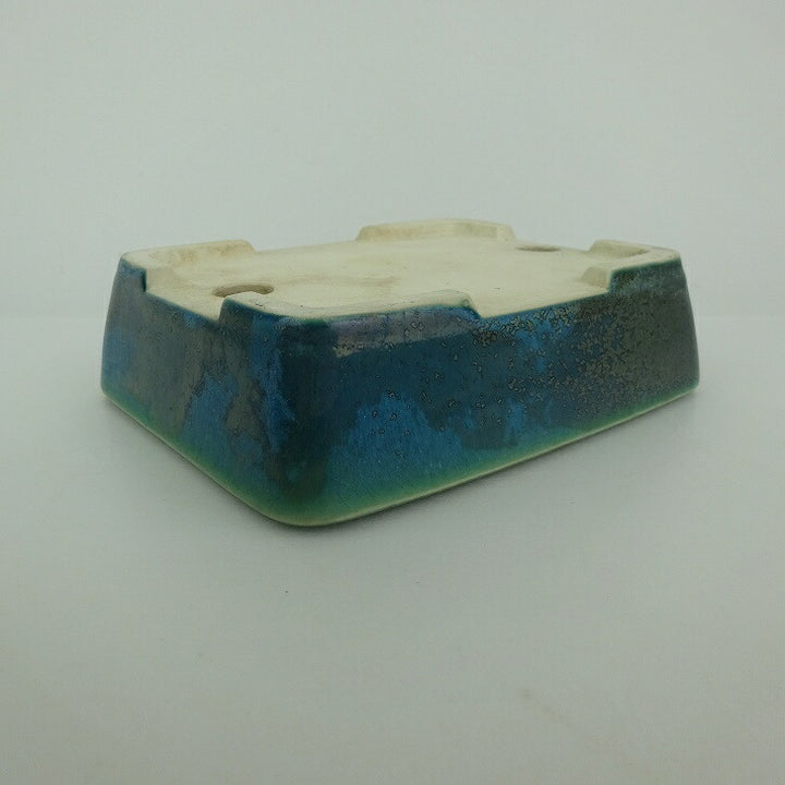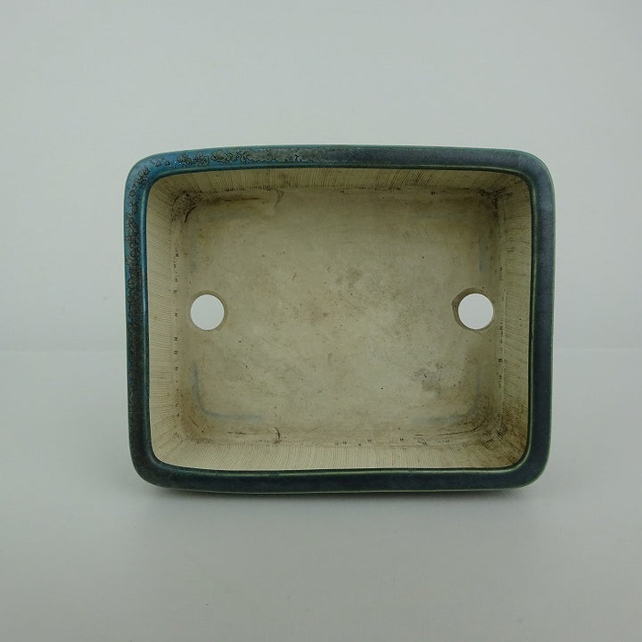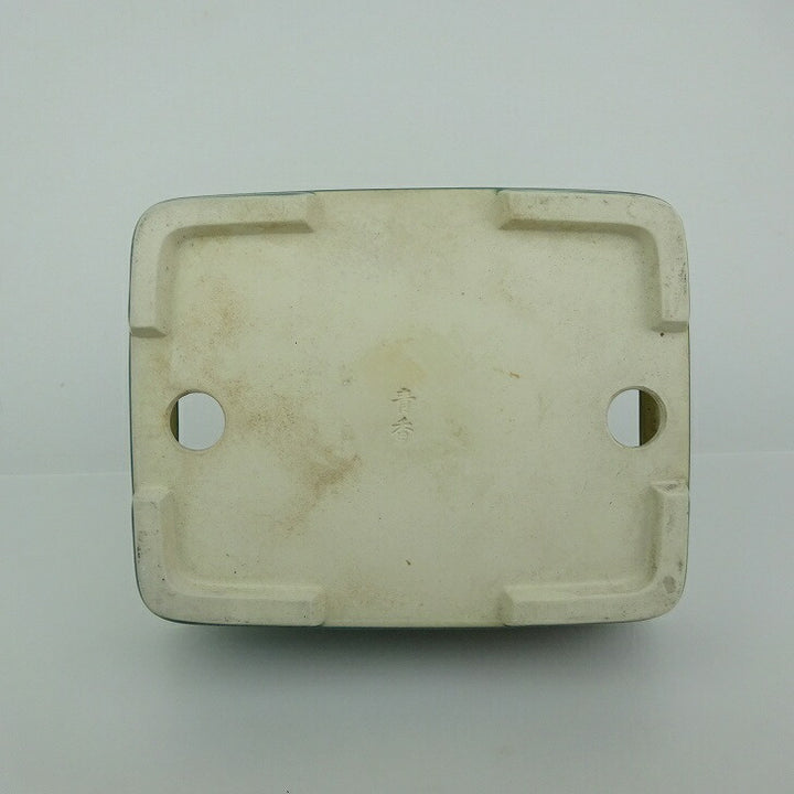 盆栽鉢 青香 小型 長辺 約 14.5cm 長方 鉢 釉薬 現品 中古鉢 品名青香...