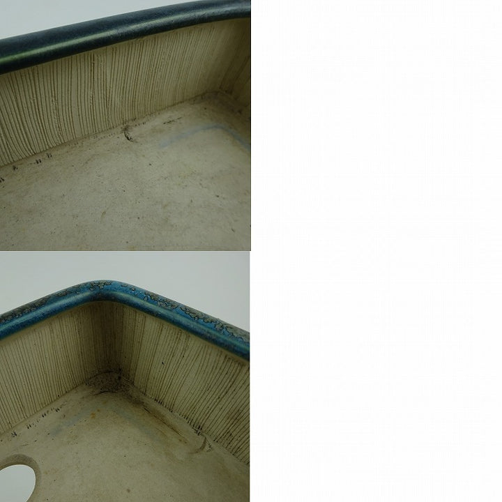 中古盆栽鉢 青香 小型 長辺 約 14.5cm 長方鉢 釉薬 中古鉢 p1198421207