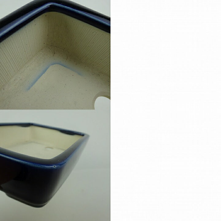 盆栽鉢 青香 小型 長辺 約 14.5cm 長方 鉢 釉薬 現品 中古鉢 品名青香...