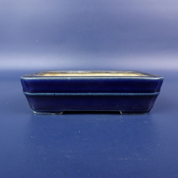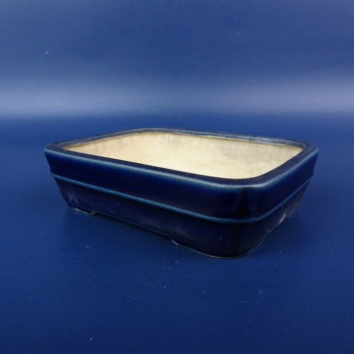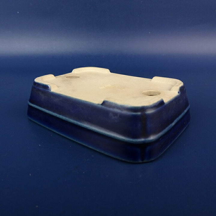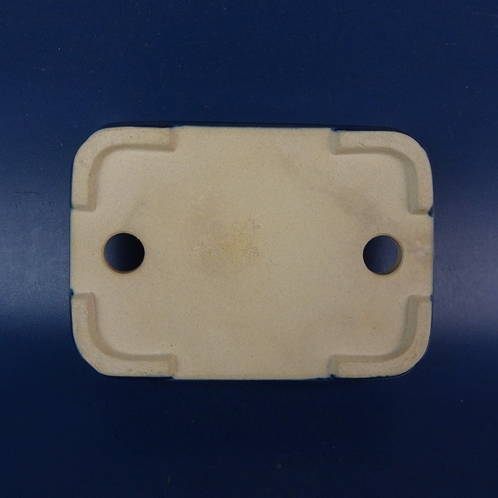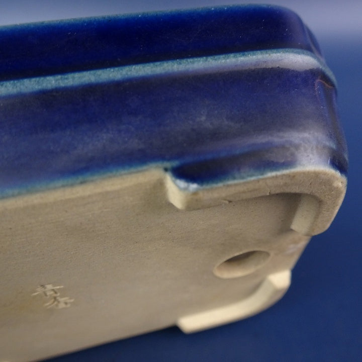 中古盆栽鉢 青香 小鉢 長辺 約 9.5cm 長方鉢 中帯 釉薬 中古鉢 g1198420167