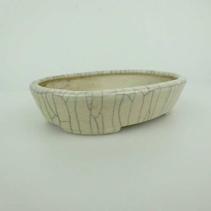 中古盆栽鉢 青香 小鉢 長辺 約10.2cm 楕円鉢 貫入 釉薬 中古鉢 s1198416066