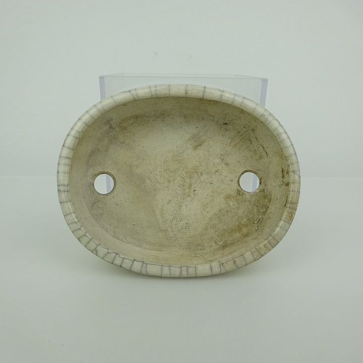 盆栽鉢 青香 小鉢 長辺 約 10.2cm 楕円 鉢 貫入 釉薬 現品 中古鉢 品名青香...