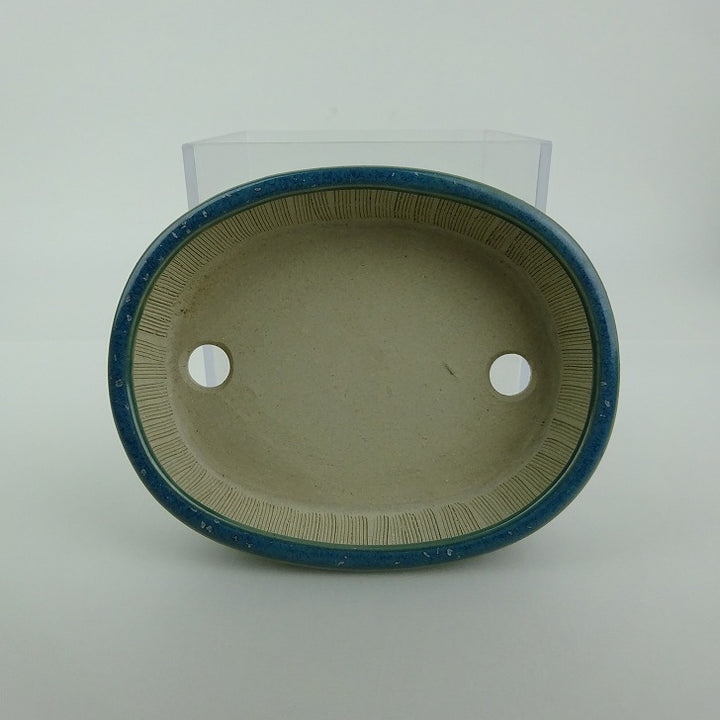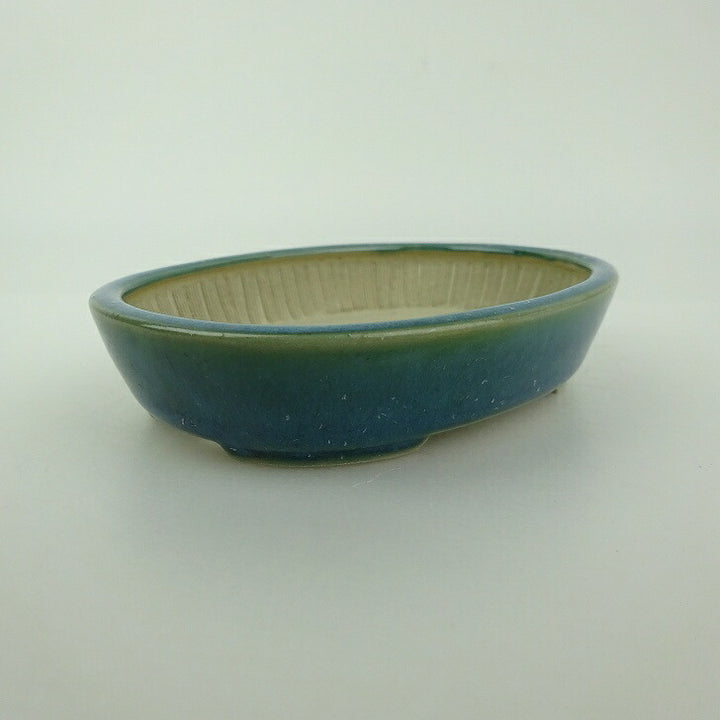 中古盆栽鉢 青香 小鉢 長辺 約10cm 楕円鉢 釉薬 中古鉢 q1198410248