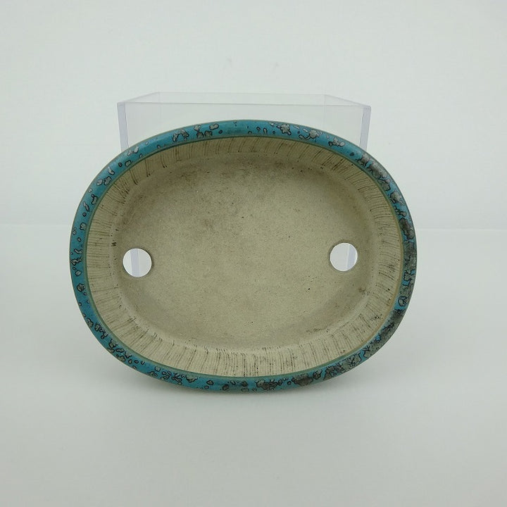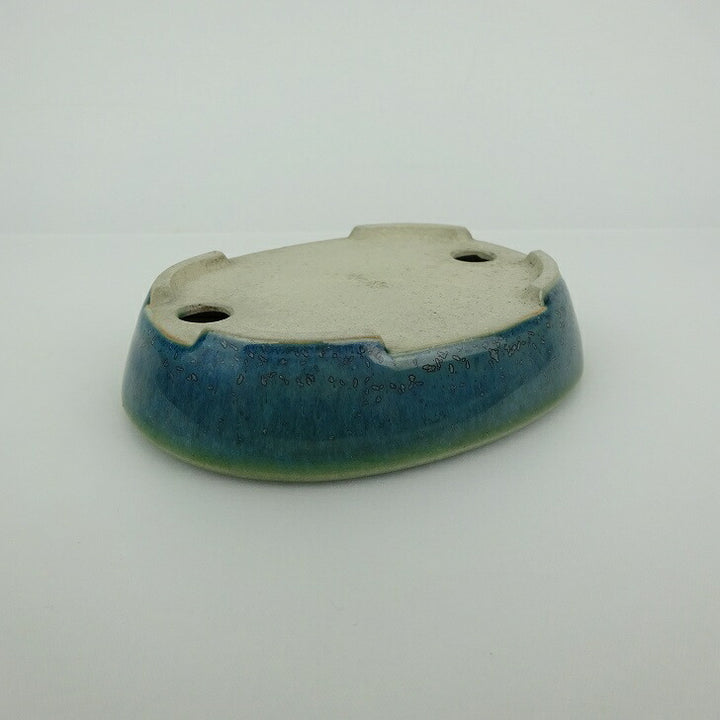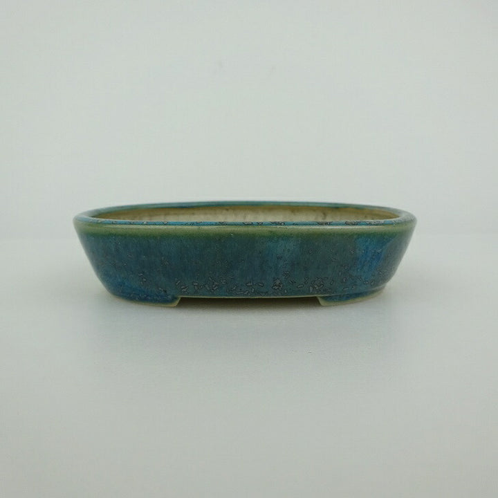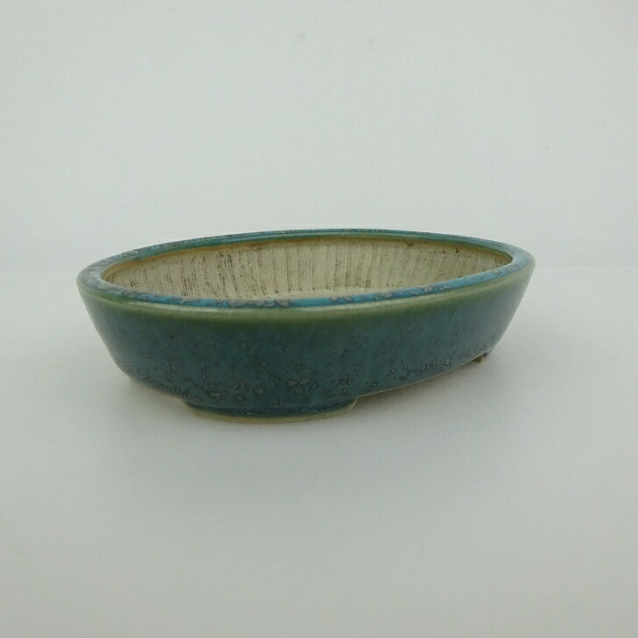 中古盆栽鉢 青香 小鉢 長辺 約10cm 楕円鉢 釉薬 中古鉢 w1198411521