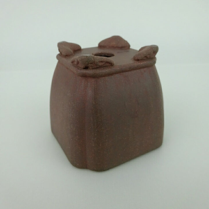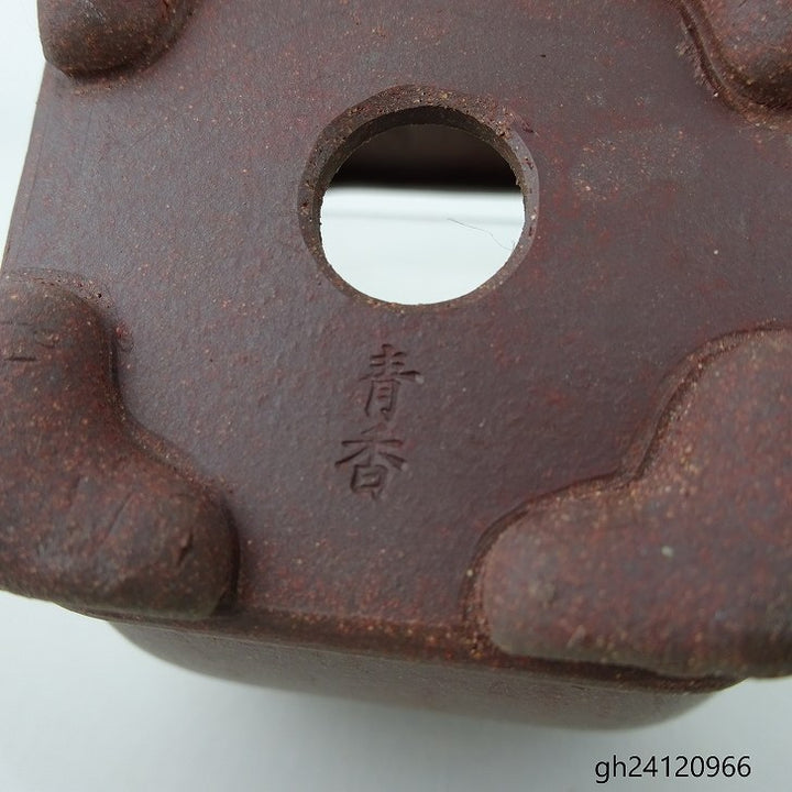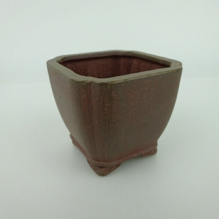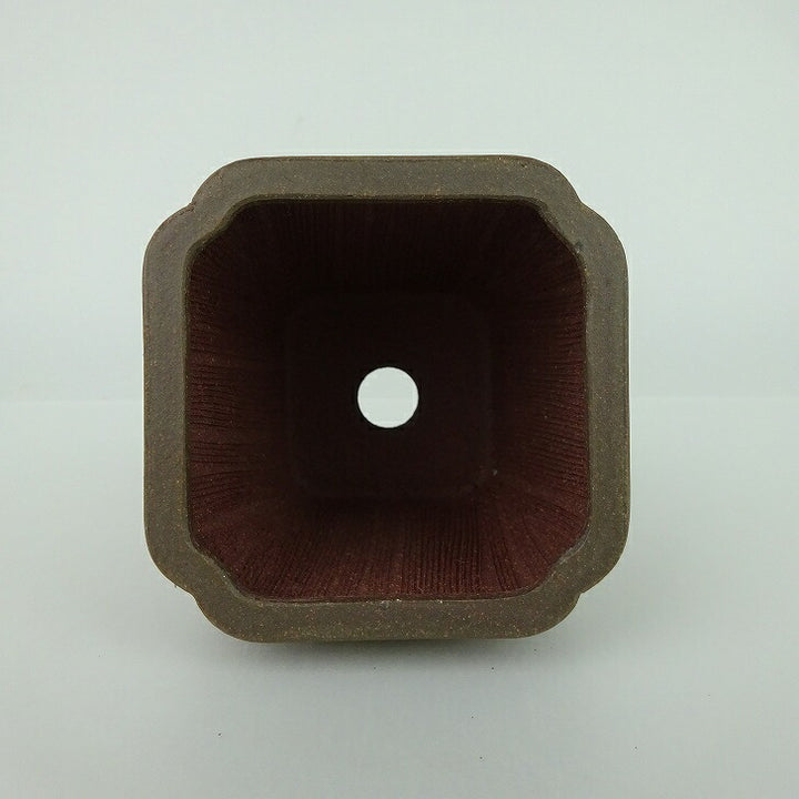 盆栽鉢 青香 小鉢 長辺 約 6.5cm 正方鉢 隅入 雲足 下帯 泥物 現品 中古鉢 品名青香...