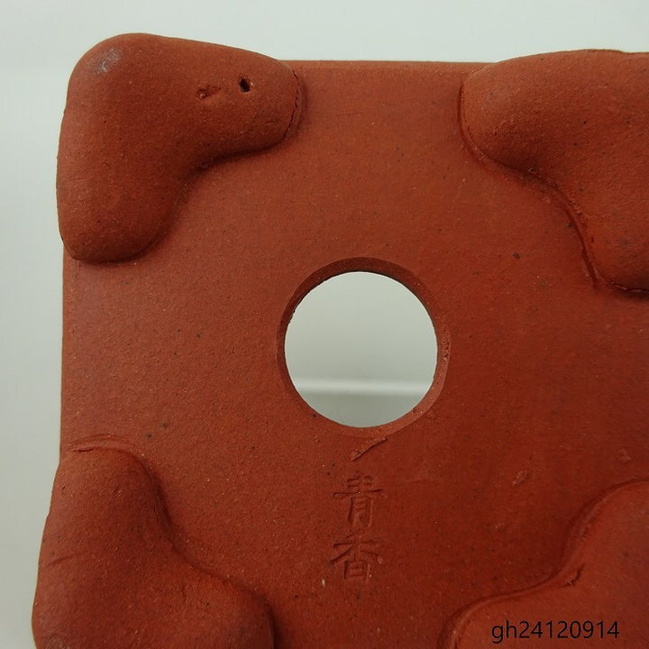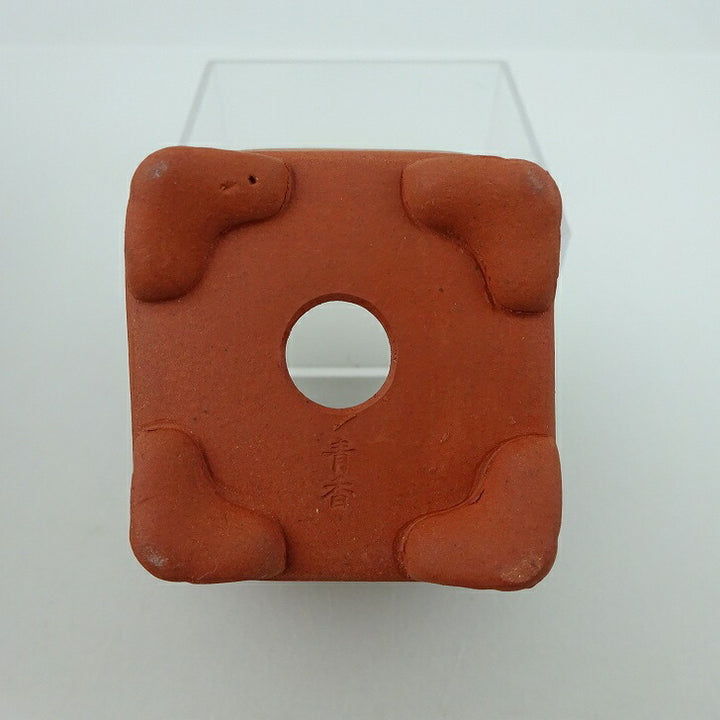 盆栽鉢 青香 小鉢 長辺 約 6.8cm 正方鉢 隅入 雲足 下帯 泥物 現品 中古鉢 品名青香...