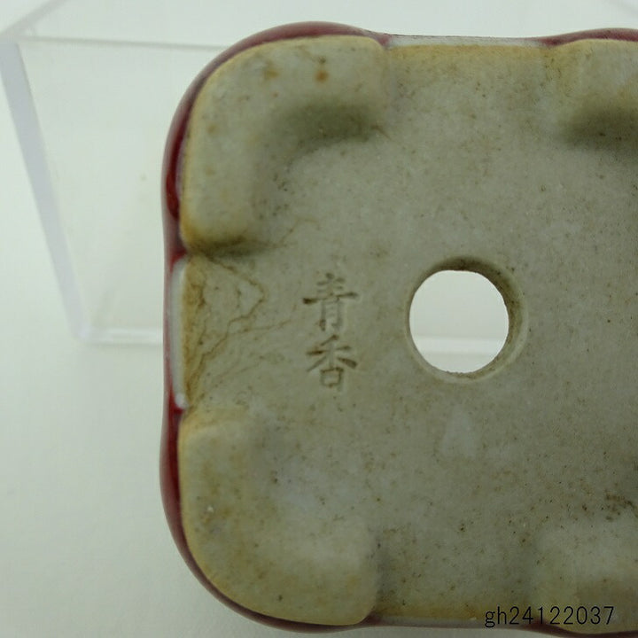盆栽鉢 青香 豆鉢 長辺 約 4.4cm 正方鉢 釉薬 現品 中古鉢 品名青香...